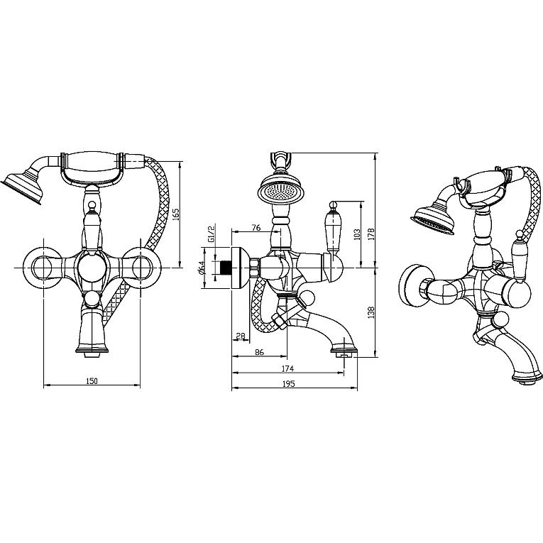 Максимальный расход Смеситель для ванны Boheme Tradizionale Nero 253 Золото воды: 15 л/мин.