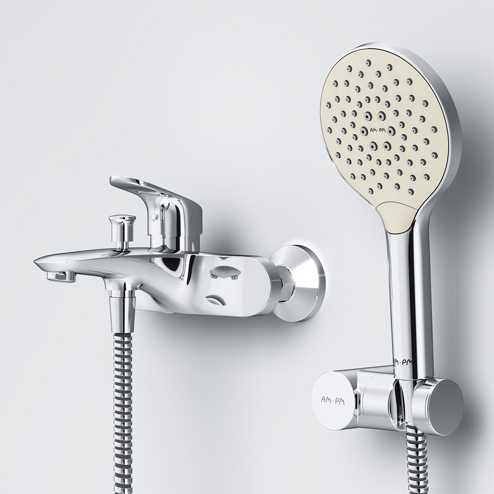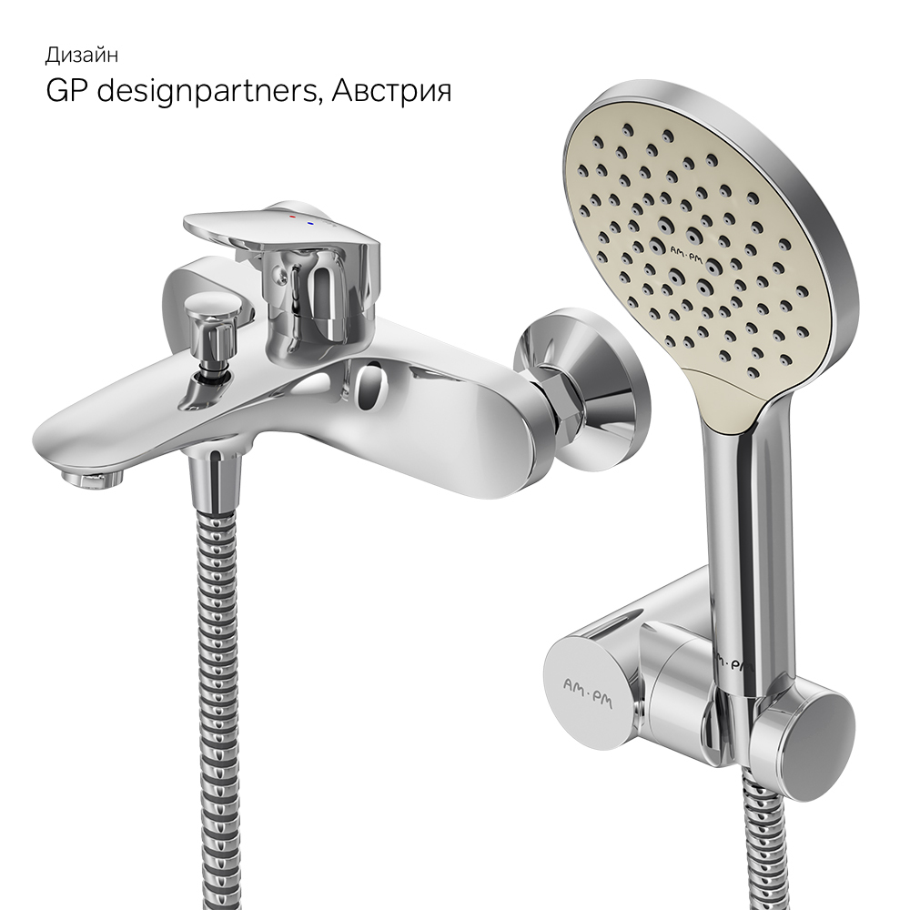 Впервые модный дизайнерский смеситель в доступном сегменте: ультрамодный стиль Dynamic Organic — природные формы в сочетании с четкими линиями доведенными до совершенства человеком. Дизайн в котором учтены все детали: благодаря уникальной форме ручки капли воды скатываются предотвращая образование налета а не высыхают на поверхности. Эксклюзивная разработка: специально спроектированный для АМ.РМ керамический картридж SoftMotion 35 мм обеспечивает широкую зону движения ручки для оптимальной регулировки температуры и напора а также позволяет выдерживать любые перепады давления. Переключение режимов «ванна-душ» больше не доставит хлопот: идеальное сочетание пневматического переключения с механическим срабатывает безукоризненно в 100% случаев даже при низком напоре воды. В комплекте душевой набор: стильный ручной душ 120 мм 3 режима настенный держатель с регулировкой угла наклона душевой шланг с защитой от скручивания. ""
