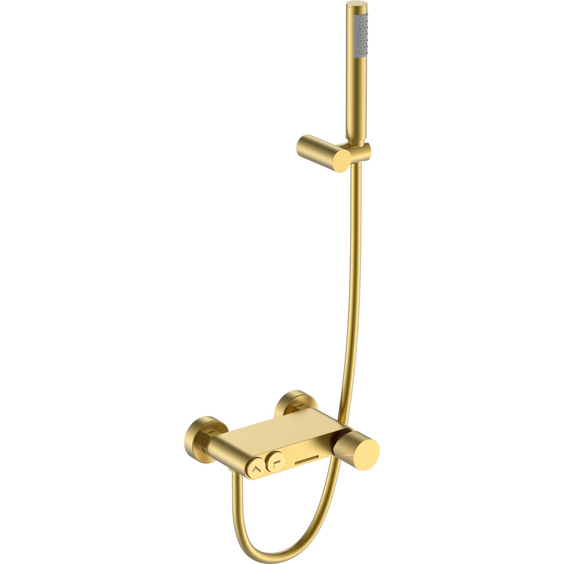 - Оснащение: душевая лейка / душевой шланг / настенный держатель