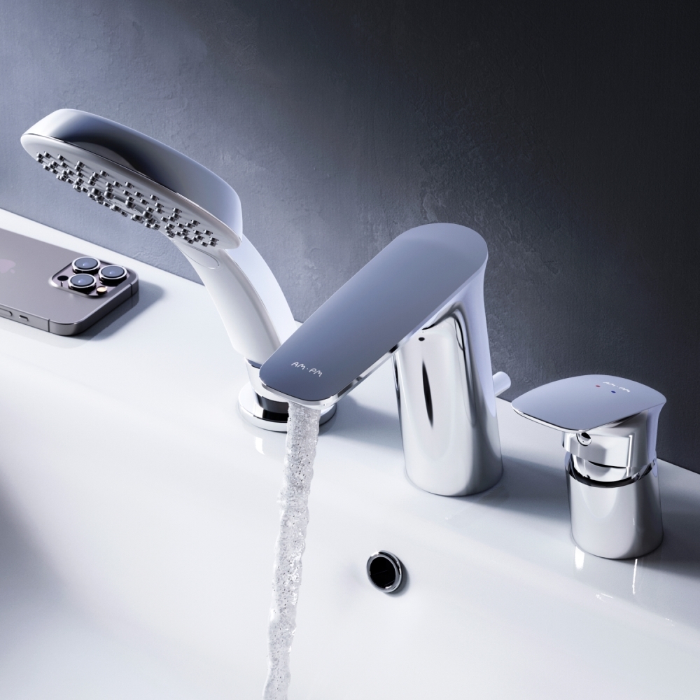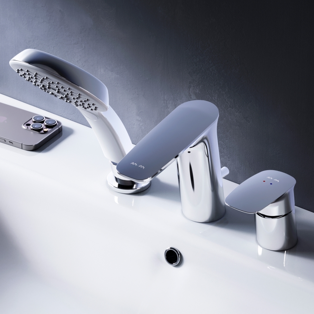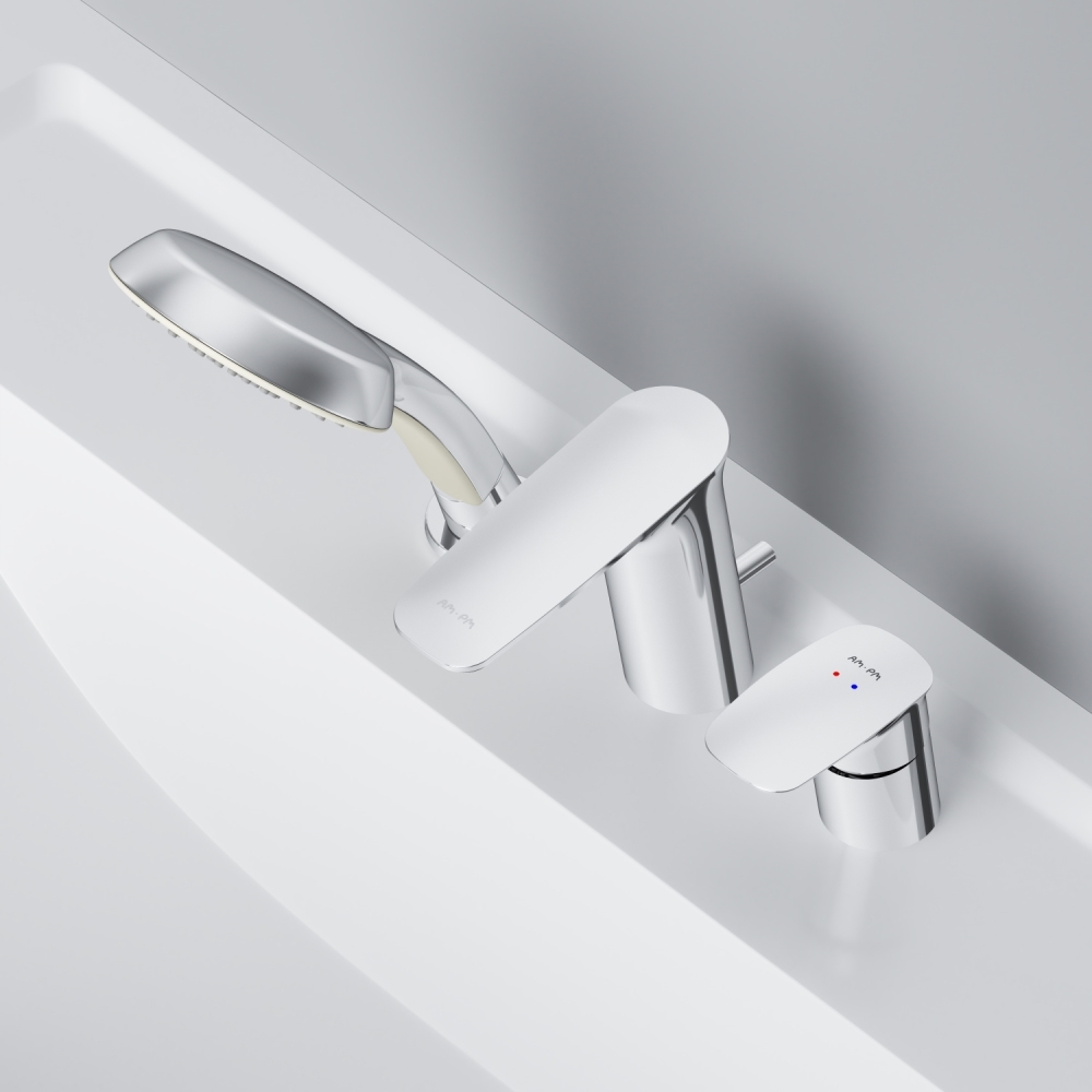 Инновационное пополнение коллекции Inspire V2.0: трехсекционный смеситель на борт ванны в неповторимом дизайнерском решении для тех кто идет в ногу со временем. Уникальное решение: смеситель оборудован ручным душем для того чтобы вы могли оценить все преимущества SPA прямо у себя дома. Три режима ручного душа: Spray EnerJet Spray + Massage переключатель режимов Simple Switch Push. Удивительно тактильный ручной душ за счёт материала поверхности soft touch. Функция Rub&Clean для легкой очистки душевых форсунок. Идеальное соотношение пропорций: средняя высота излива и премиальный размер ручного душа обеспечивают максимальный комфорт использования. Эксклюзивная разработка для АМ.РМ: специально спроектированный керамический картридж SoftMotion 35 мм обеспечивает низкий уровень шума выдерживает любые перепады давления в водопроводной сети ""