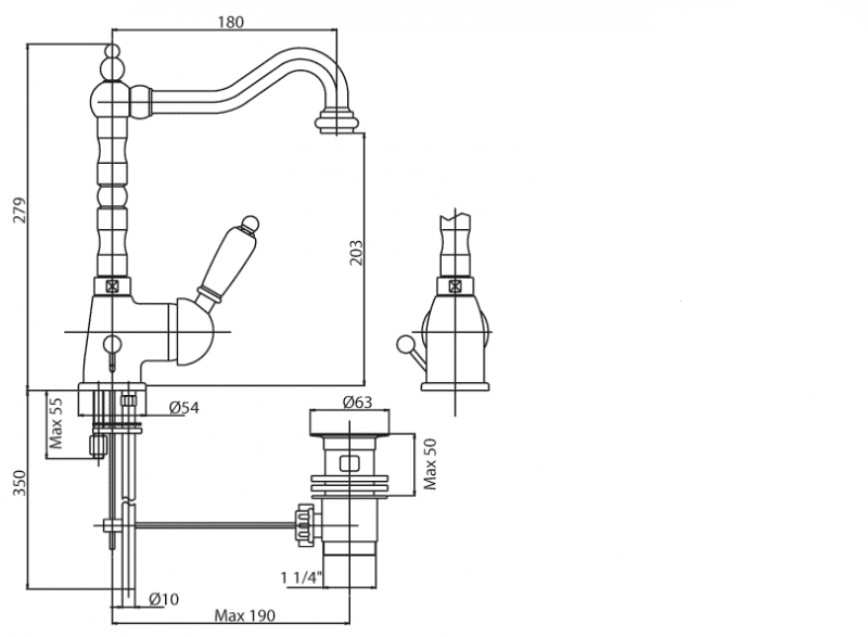 Оснащение: донный клапан, аэратор