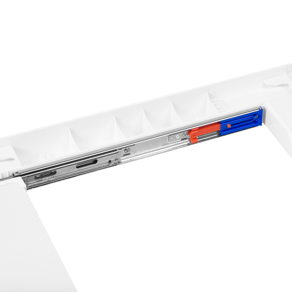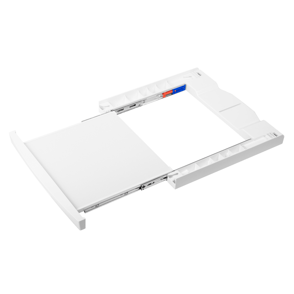 Соединительный элемент с выдвижной полочкой MAUNFELD WM-SK позволяет установить сушильный аппарат на стиральную машину "в колонну".