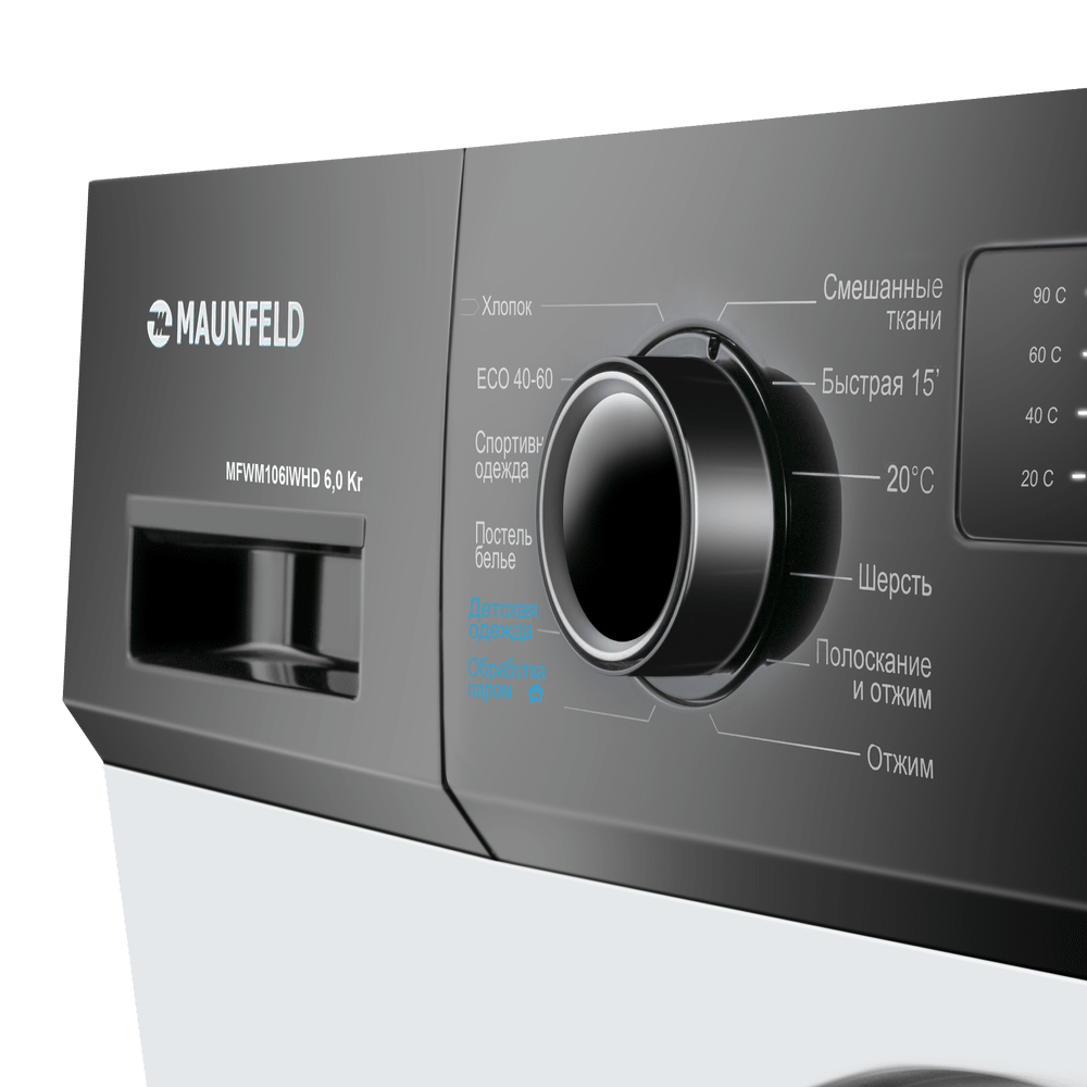 Узкая стиральная машина c инвертором и паром MAUNFELD MFWM106IWHD - деликатный помощник в вашем доме.