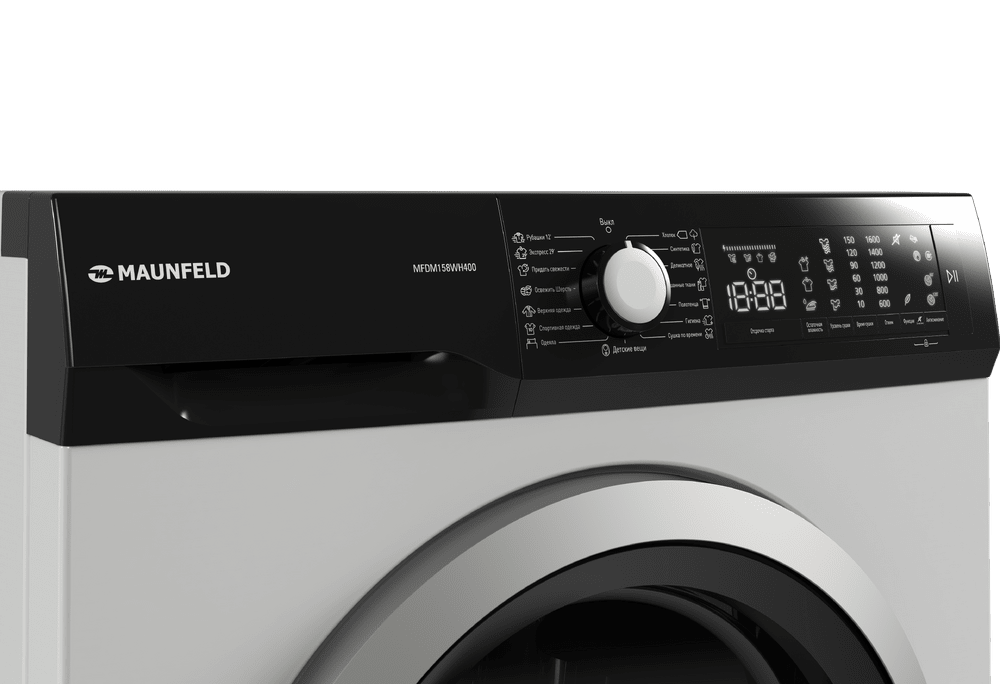 Сушильная машина MAUNFELD MFDM158400 — это полноразмерная отдельностоящая модель конденсационного типа, рассчитанная на эффективную сушку до 8 кг белья. Она сочетает в себе высокую производительность, бережный уход за тканями и современные функции для максимального удобства.