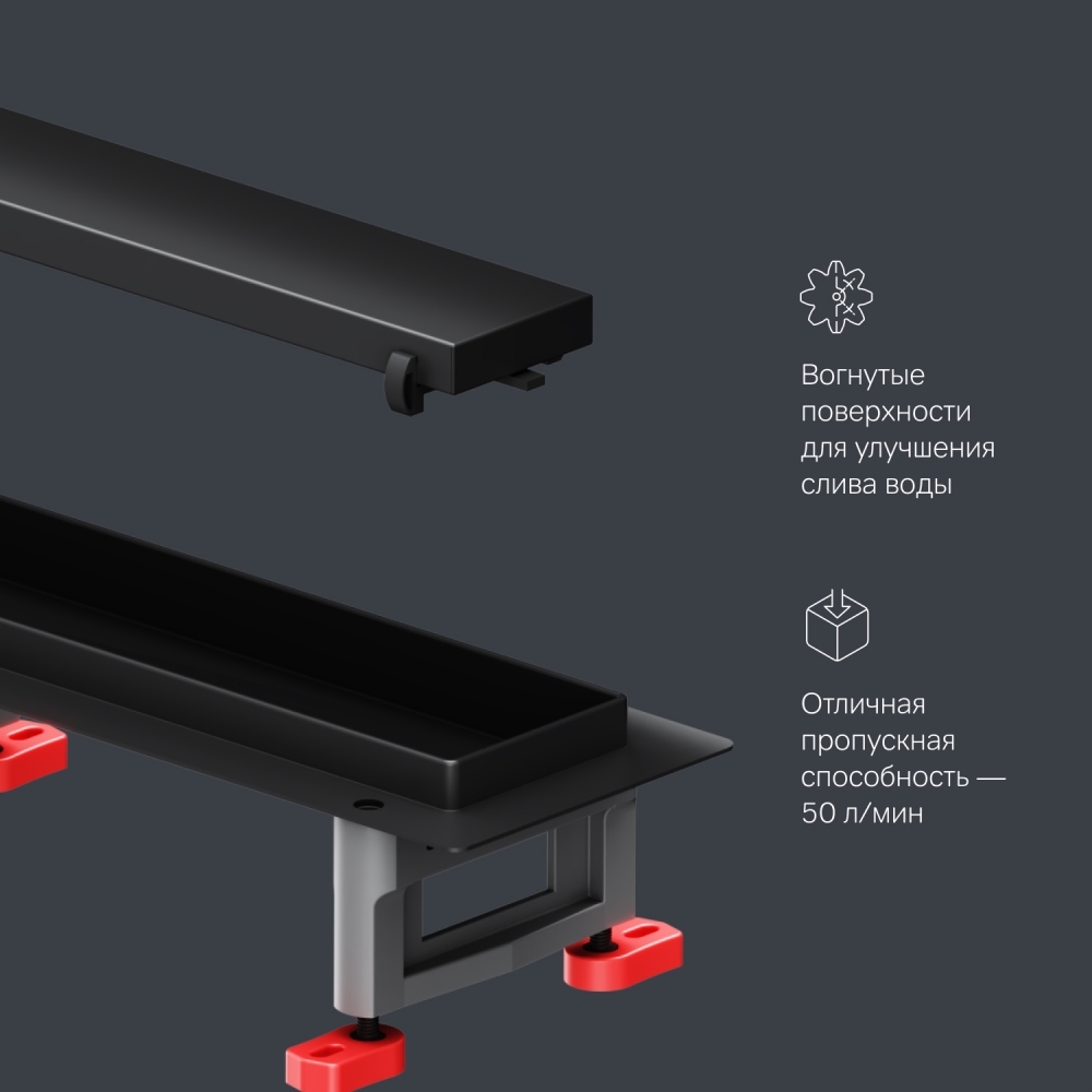 Детально проработанная форма изделия точные выверенные линии. Представляем инновационный трап для душа Masterflow. Универсальная двухсторонняя решетка трапа может быть использована как самостоятельная декоративная вставка либо как база для вклейки плитки. Трап для душа имеет высокую пропускную способность 50 л/мин. Обладает комбинированным затвором: сухим магнитным и гидрозатвором проверенной технологией. Данная технология гарантирует 100% защиту от проникновения запахов из канализации высокую надежность и долговечность. Выдерживает даже самые большие механические нагрузки. Поворотный сифон на 360 градусов позволяет установить трап наиболее удобным и комфортным образом. Продукт обладает низкой высотой монтажа и возможностью регулировки что предполагает экономию бюджета при заливке пола. Трап выполнен из высококачественной нержавеющей стали марки AISI 304. Выход разработан на два диаметра: 40 и 50 мм которые выбираются в процессе монтажа. Размер изделия 80 см. Дизайн трапа выполнен в элегантном матовом черном цвете. ""
