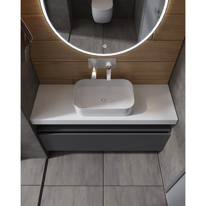 Столешницы и раковины по периметру имеют борт высотой 8см и скрытый крепеж. Подвесные тумбы и ArmadiArt выполнены в размерах 60см, 80см, 100см, 120см и 140см.
