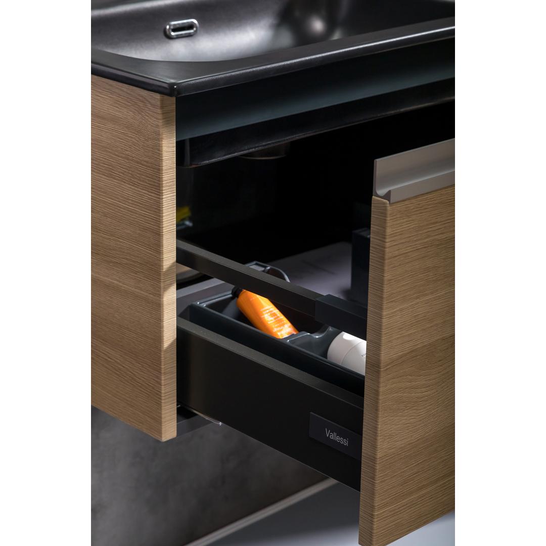• Представляем вашему вниманию коллекцию мебели Vallessi от известного итальянского бренда ArmadiArt. Цветовая гамма коллекции Vallessi состоит из множества самых трендовых цветов: Традиционный Белый глянец, глянцевый Антрацит, глянцевый Капучино и глянцевый кашемир. Матовые исполнения представлены в цветах: Антрацит, матовый Dust Grey, Stone grey, и матовый кашемир. Все матовые фасады обладают особенным покрытием Soft Touch — приятным на ощупь. Также в линейке Vallessi представлены древесные фактуры: Зебрано, Темный и светлый Дуб. Фасады коллекции Vallessi произведены из МДФ на ведущих европейских фабриках Senosan (Австрия), Alfatherm (Италия), Renolit (Германия). Размерная линейка состоит из тумб шириной 60 см, 80 см, 100 см, 120 см и 140 см (на две раковины).