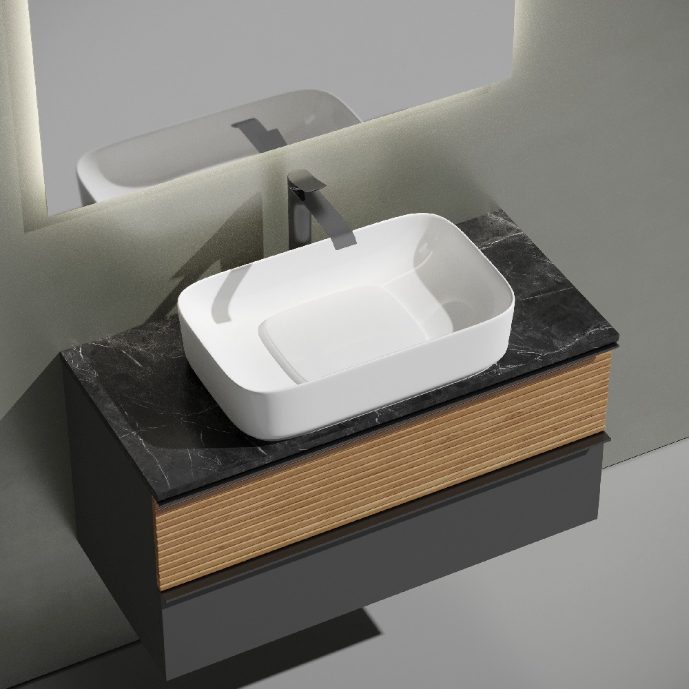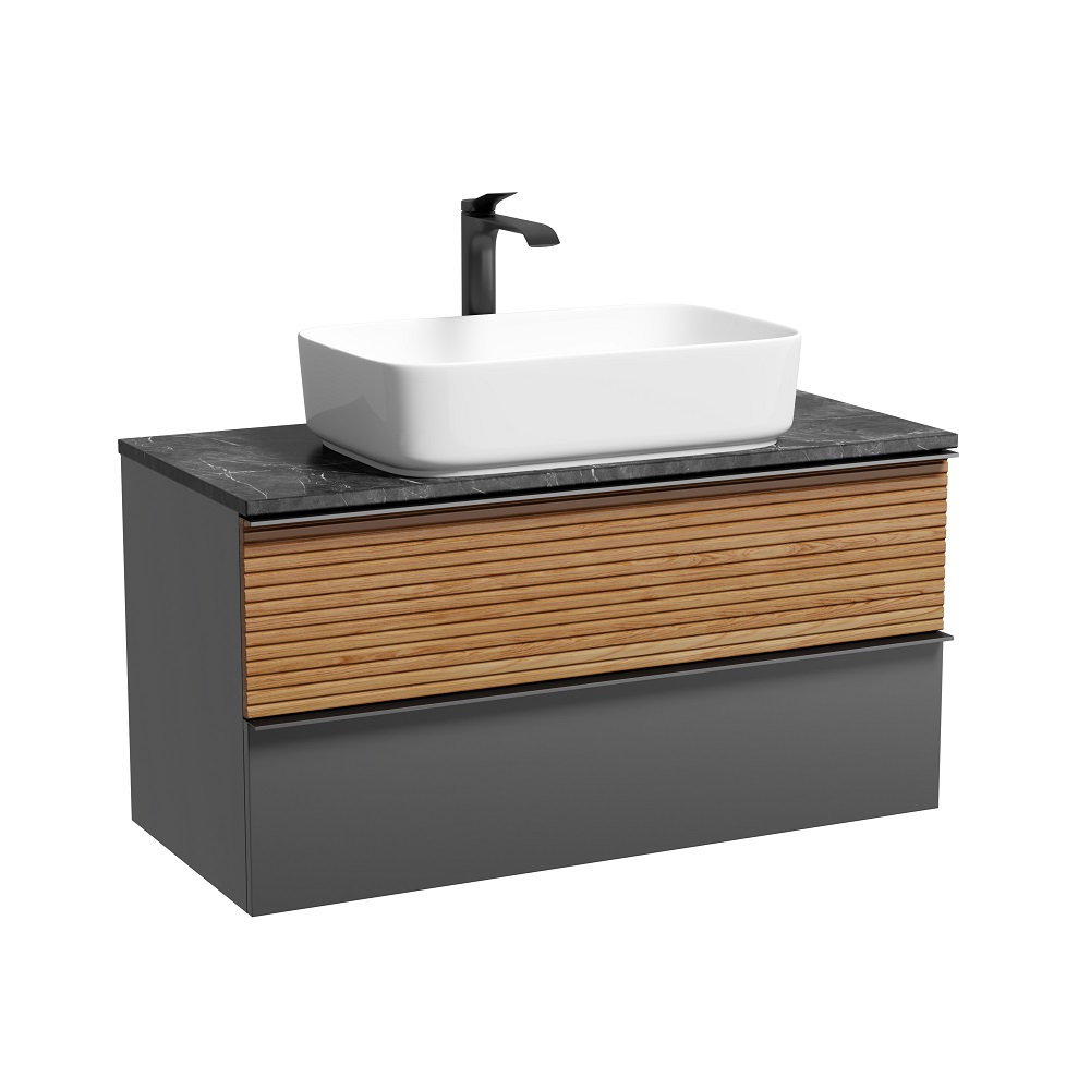 Тумба подвесная Sancos Delta, Дуб красный/графит 995х445х500, под столешницу с отверстием под смеситель, цвет Black Sky