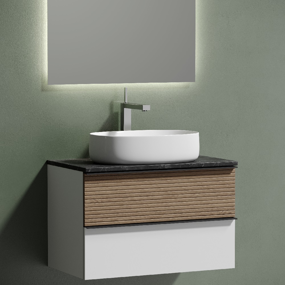 Тумба подвесная Sancos Delta, Дуб светлый/белый 790х445х500, под столешницу с отверстием под смеситель, цвет Black Sky