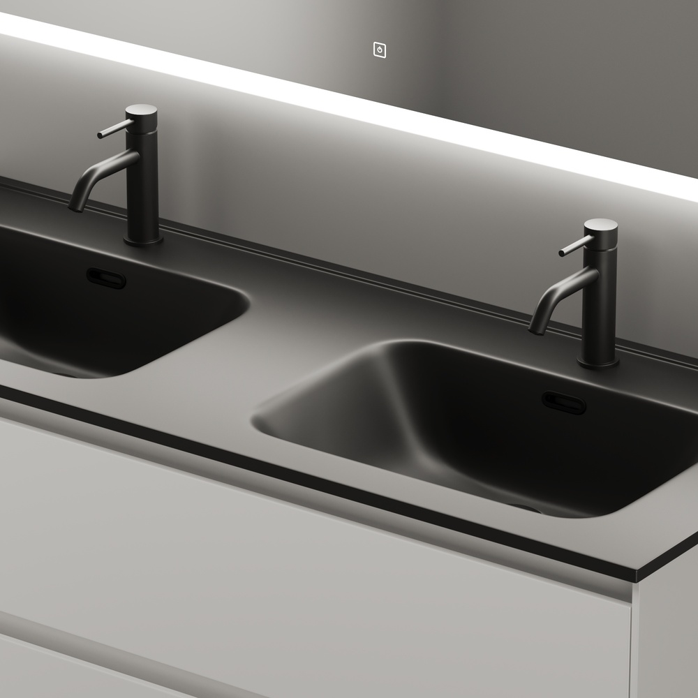 Тумба подвесная Cento c двумя ящиками оснащенными доводчиками скрытого монтажа с системой плавного закрывания. Фасад и каркас тумбы выполнен из МДФ с покрытием – эмаль в цвете «белый глянец».
