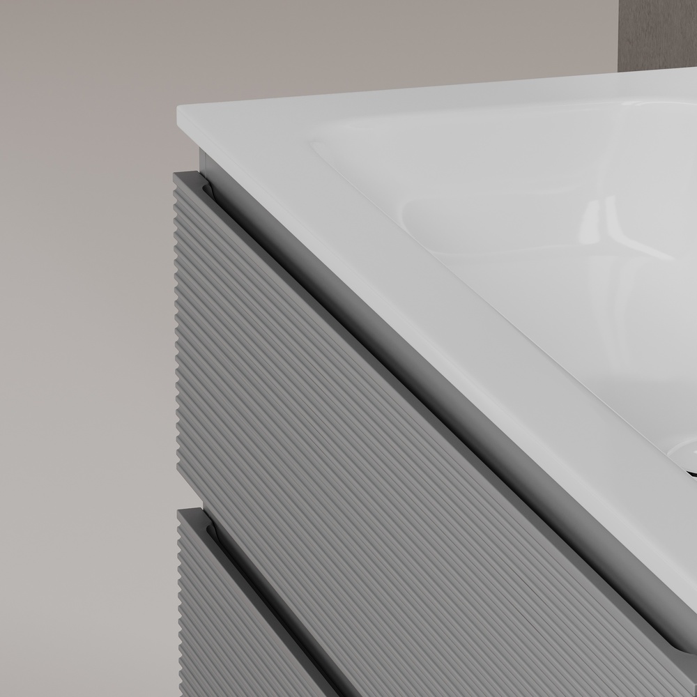Тумба подвесная с рельефным фасадом SANCOS Folk 1195х445х500, c двумя ящиками оснащенными доводчиками скрытого монтажа с системой плавного закрывания, цвет Ergraut soft, арт.FL120ES