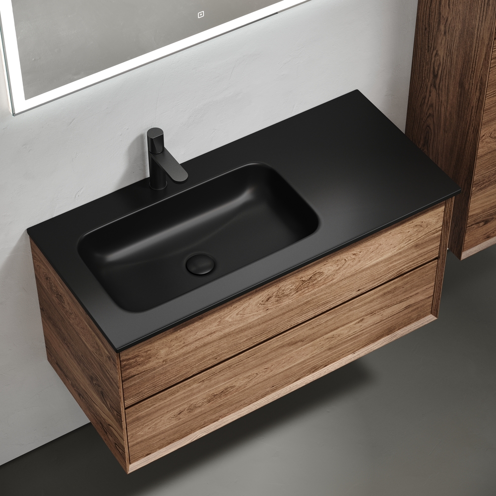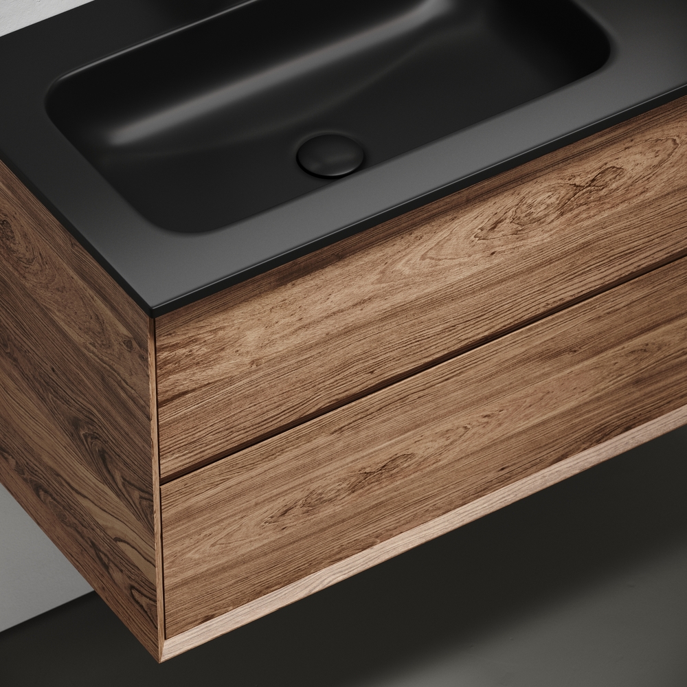 Тумба подвесная SANCOS Marmi 2.0 левая, 995х445х520, c двумя ящиками оснащенными доводчиками скрытого монтажа с системой Soft close (плавного закрывания), c фрезерованными ручками по всей длине фасада, цвет дуб чарльстон, арт.MR2.0100LECH