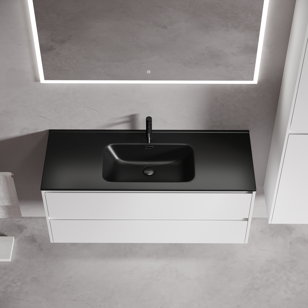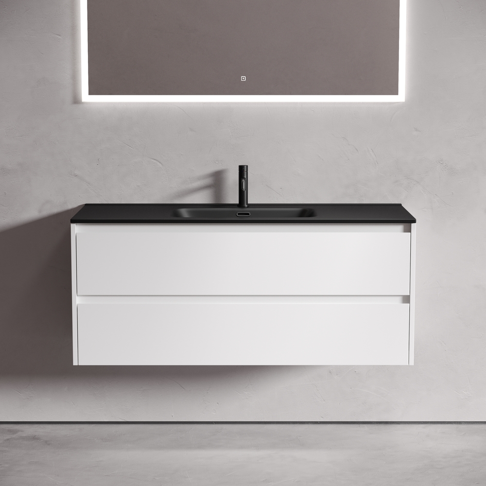 Тумба подвесная Libra c двумя ящиками оснащенными доводчиками скрытого монтажа с системой плавного закрывания и с ручкой по всей длине ящика. Каркас и фасад тумбы выполнен из МДФ в цвете «белый глянец».