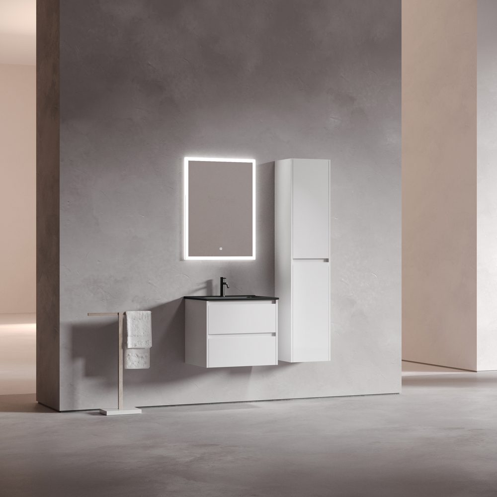 Тумба подвесная Libra c двумя ящиками оснащенными доводчиками скрытого монтажа с системой плавного закрывания и с ручкой по всей длине ящика. Каркас и фасад тумбы выполнен из МДФ в цвете «белый глянец».