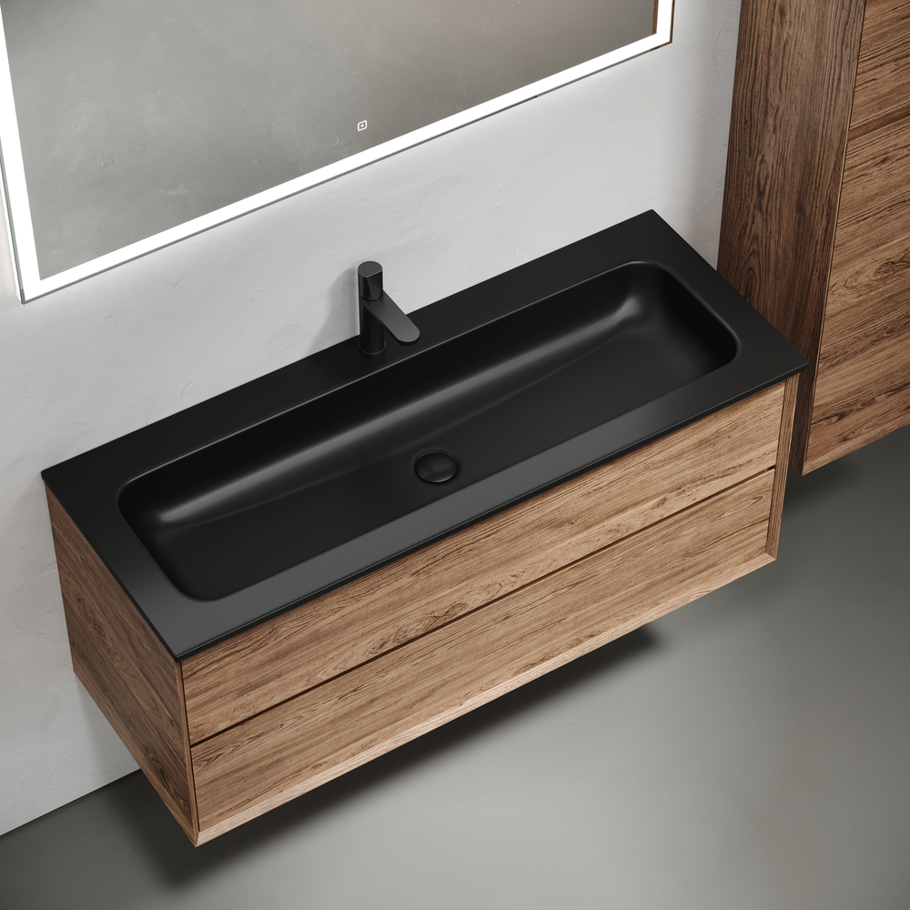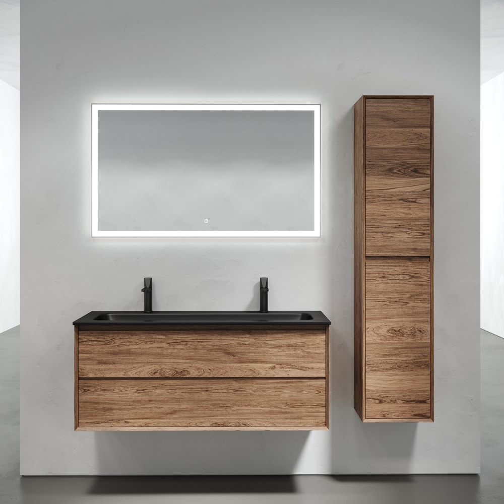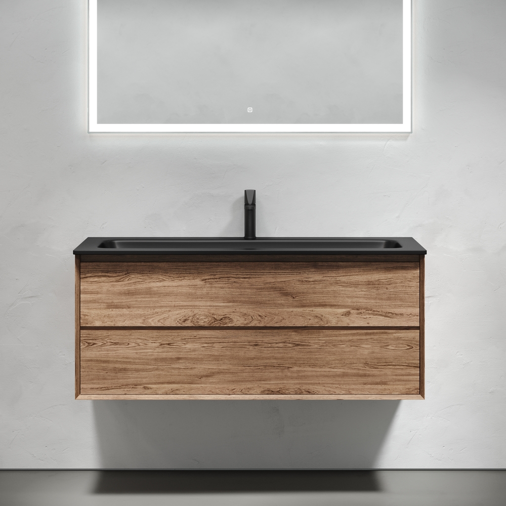 Тумба подвесная SANCOS Marmi 2.0 1195х445х520 c двумя ящиками оснащенными доводчиками скрытого монтажа с системой Soft close (плавного закрывания), c фрезерованными ручками по всей длине фасада, цвет дуб чарльстон, арт.MR2.0120ECH