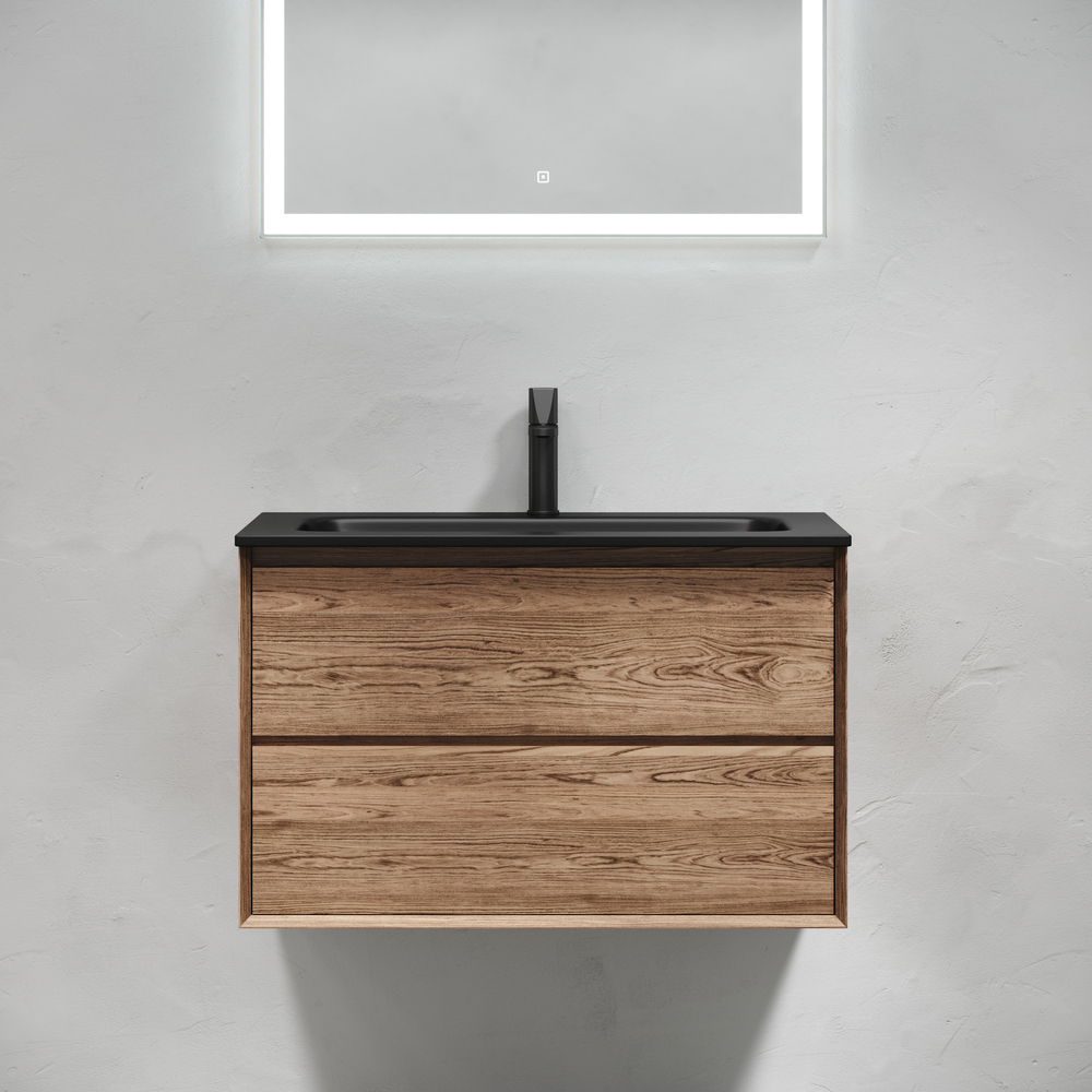 Тумба подвесная SANCOS Marmi 2.0 790х445х520 c двумя ящиками оснащенными доводчиками скрытого монтажа с системой Soft close (плавного закрывания), c фрезерованными ручками по всей длине фасада, цвет дуб чарльстон, арт.MR2.080ECH