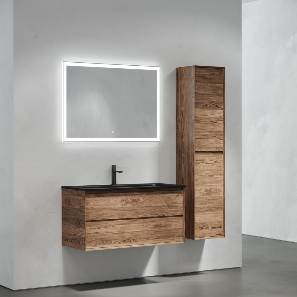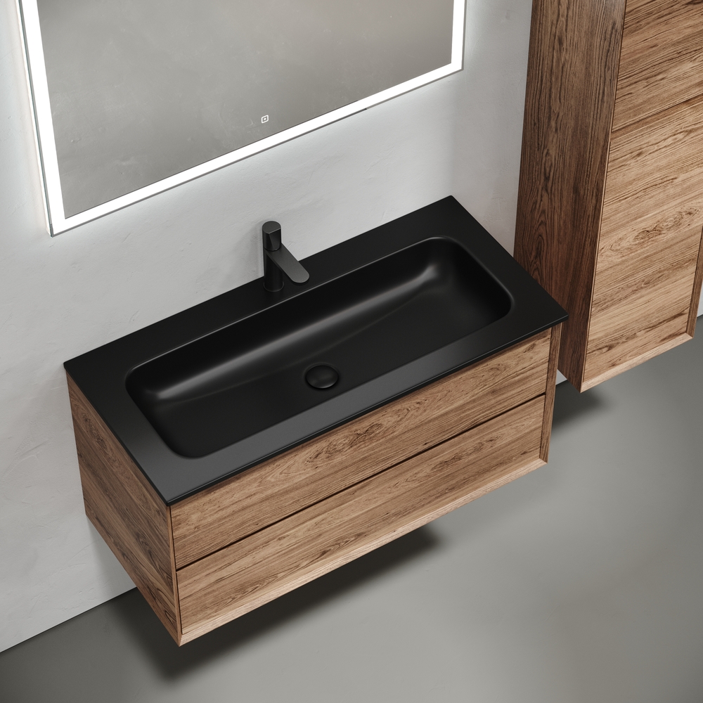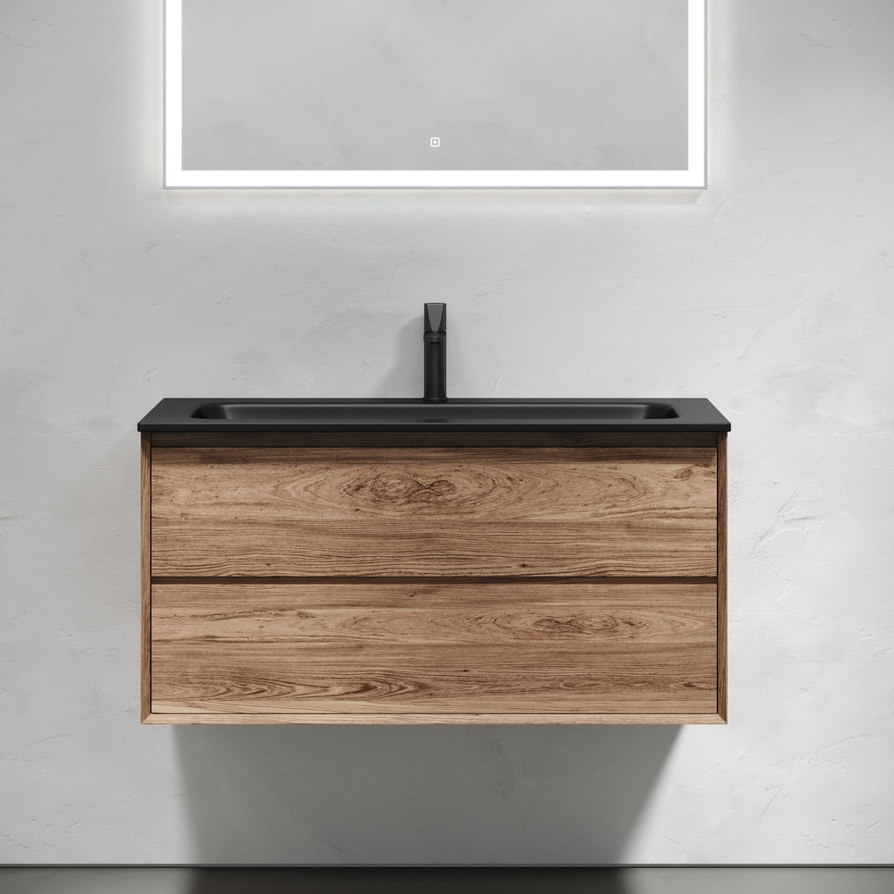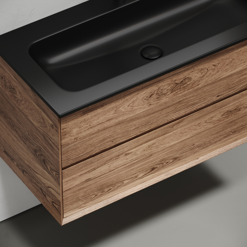 Тумба подвесная SANCOS Marmi 2.0 995х445х520 c двумя ящиками оснащенными доводчиками скрытого монтажа с системой Soft close (плавного закрывания), c фрезерованными ручками по всей длине фасада, цвет дуб чарльстон, арт.MR2.0100ECH