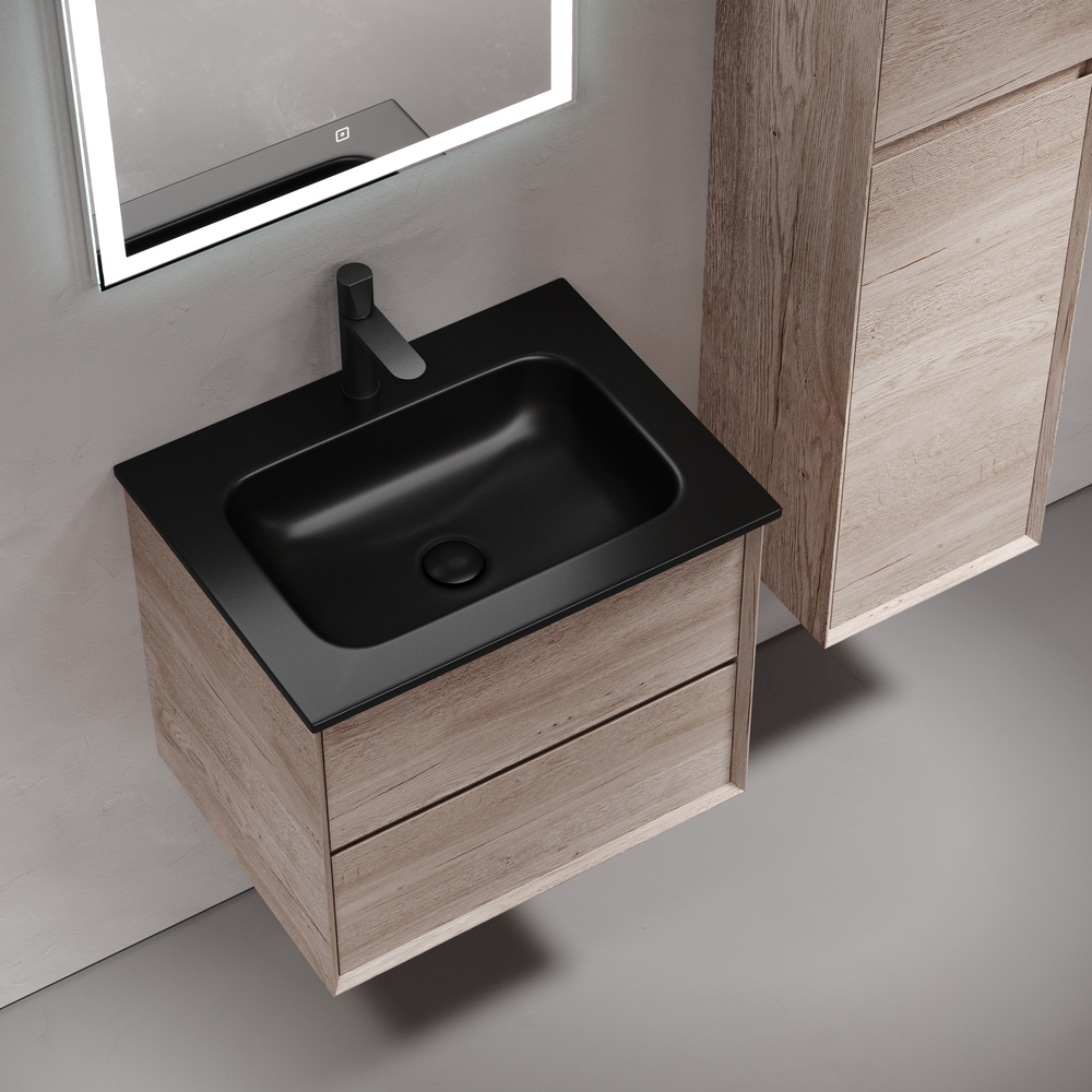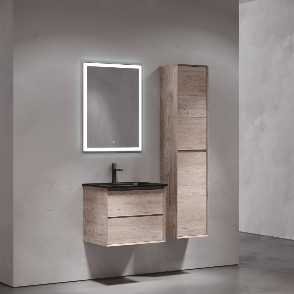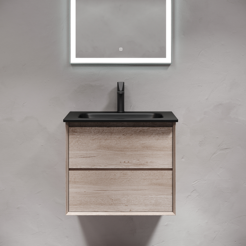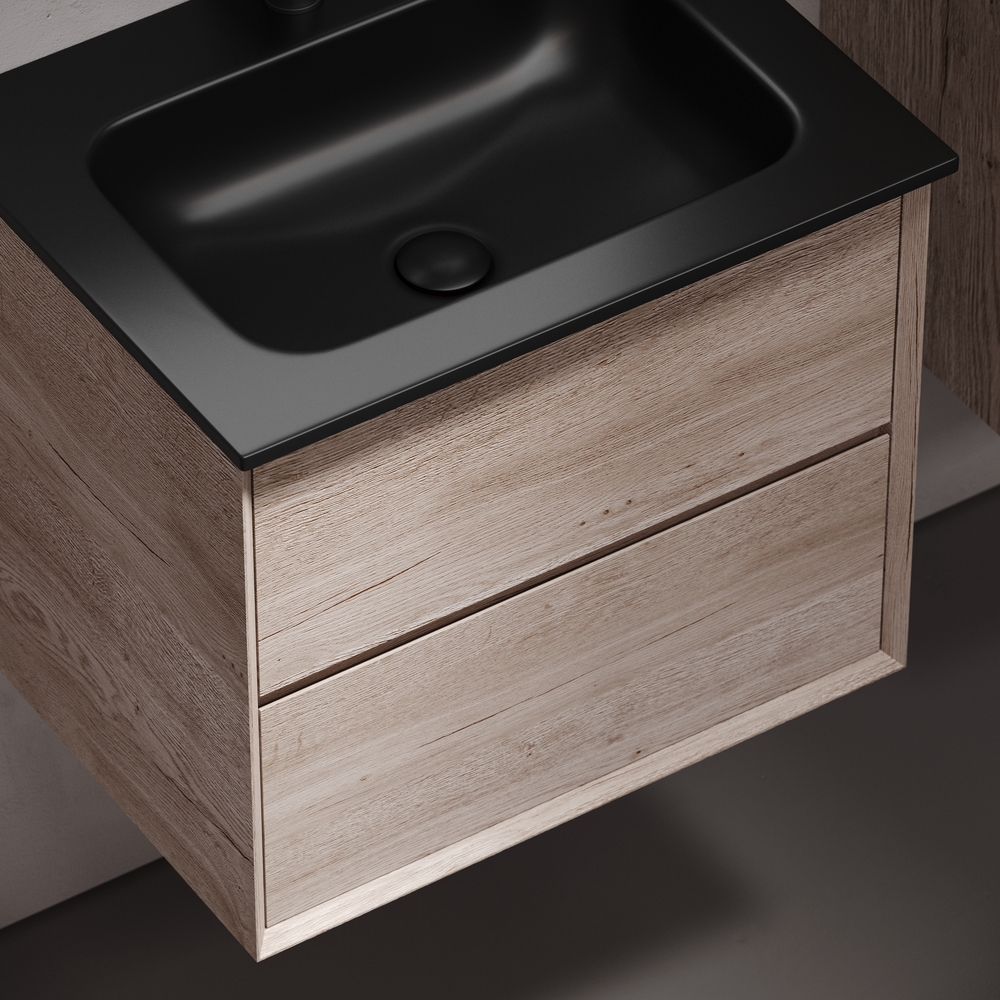 Тумба подвесная SANCOS Marmi 2.0 590х445х520 c двумя ящиками оснащенными доводчиками скрытого монтажа с системой Soft close (плавного закрывания), c фрезерованными ручками по всей длине фасада, цвет дуб галифакс натуральный, арт. MR2.060EG