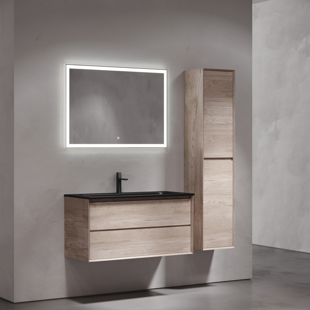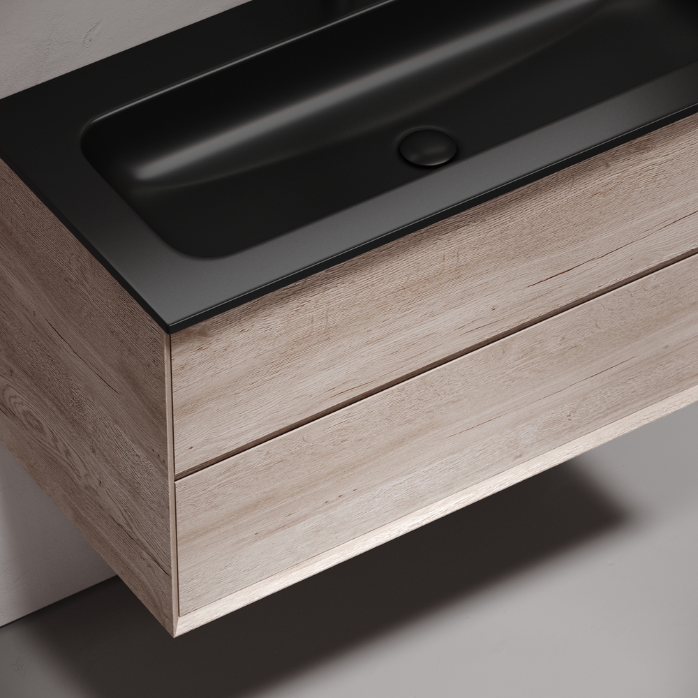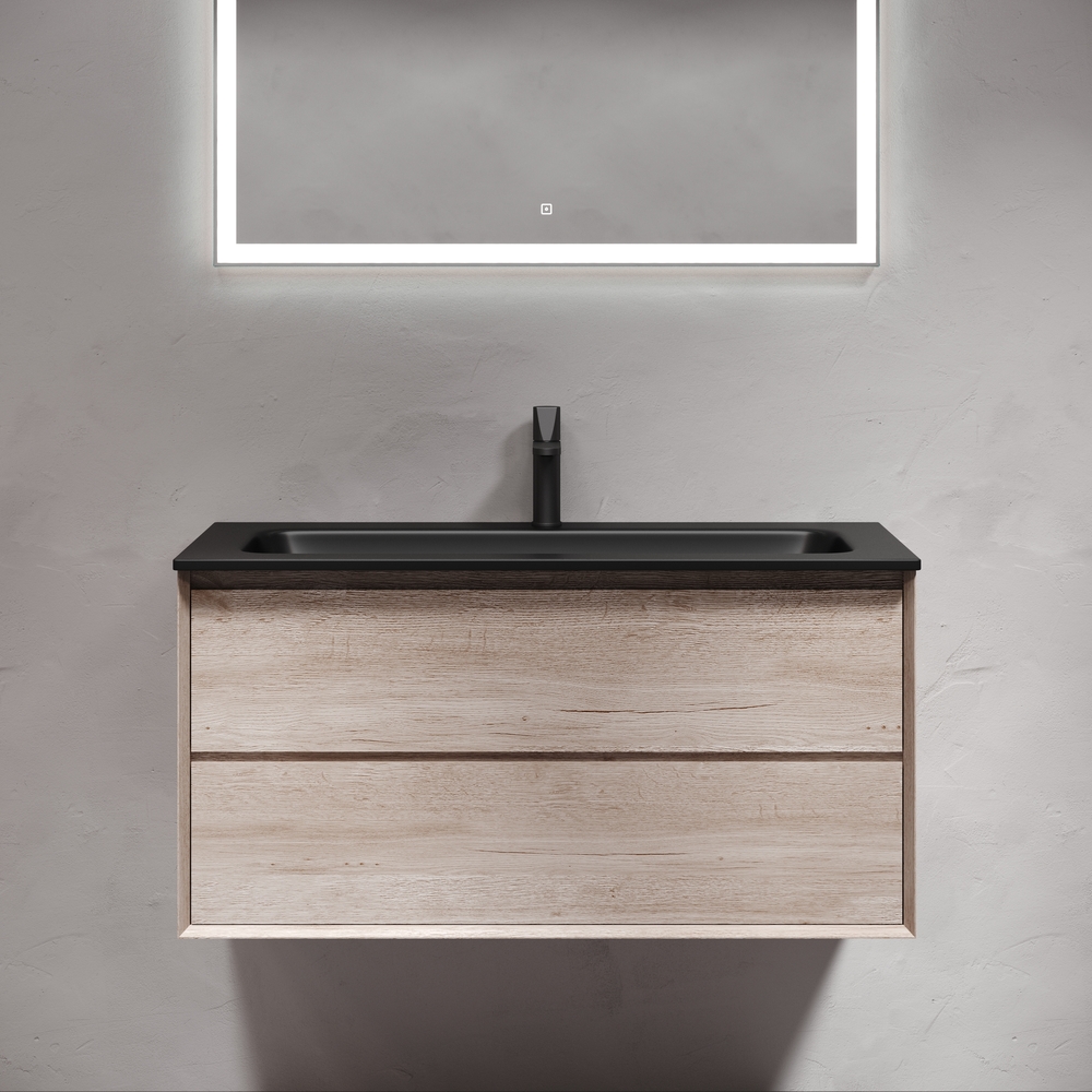 Тумба подвесная SANCOS Marmi 2.0 995х445х520 c двумя ящиками оснащенным доводчиками скрытого монтажа с системой Soft close (плавного закрывания), c фрезерованными ручками по всей длине фасада, цвет дуб галифакс натуральный, арт. MR2.0100EG