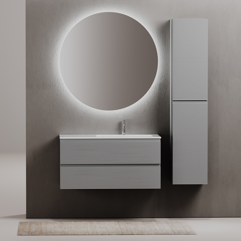 Тумба подвесная с рельефным фасадом правая SANCOS Folk 995х445х500, c двумя ящиками оснащенными доводчиками скрытого монтажа с системой плавного закрывания, цвет Ergraut soft, арт.FL100RES