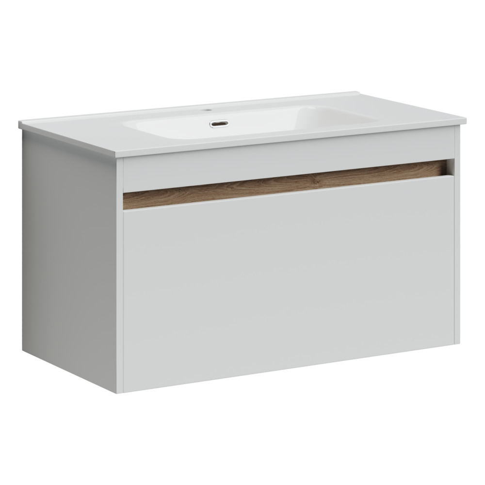 Раковина керамическая с глубокой чашей и полочками для хранения. Раковина снабжена отверстием перелива, хромированная заглушка для отверстия входит в комплект.