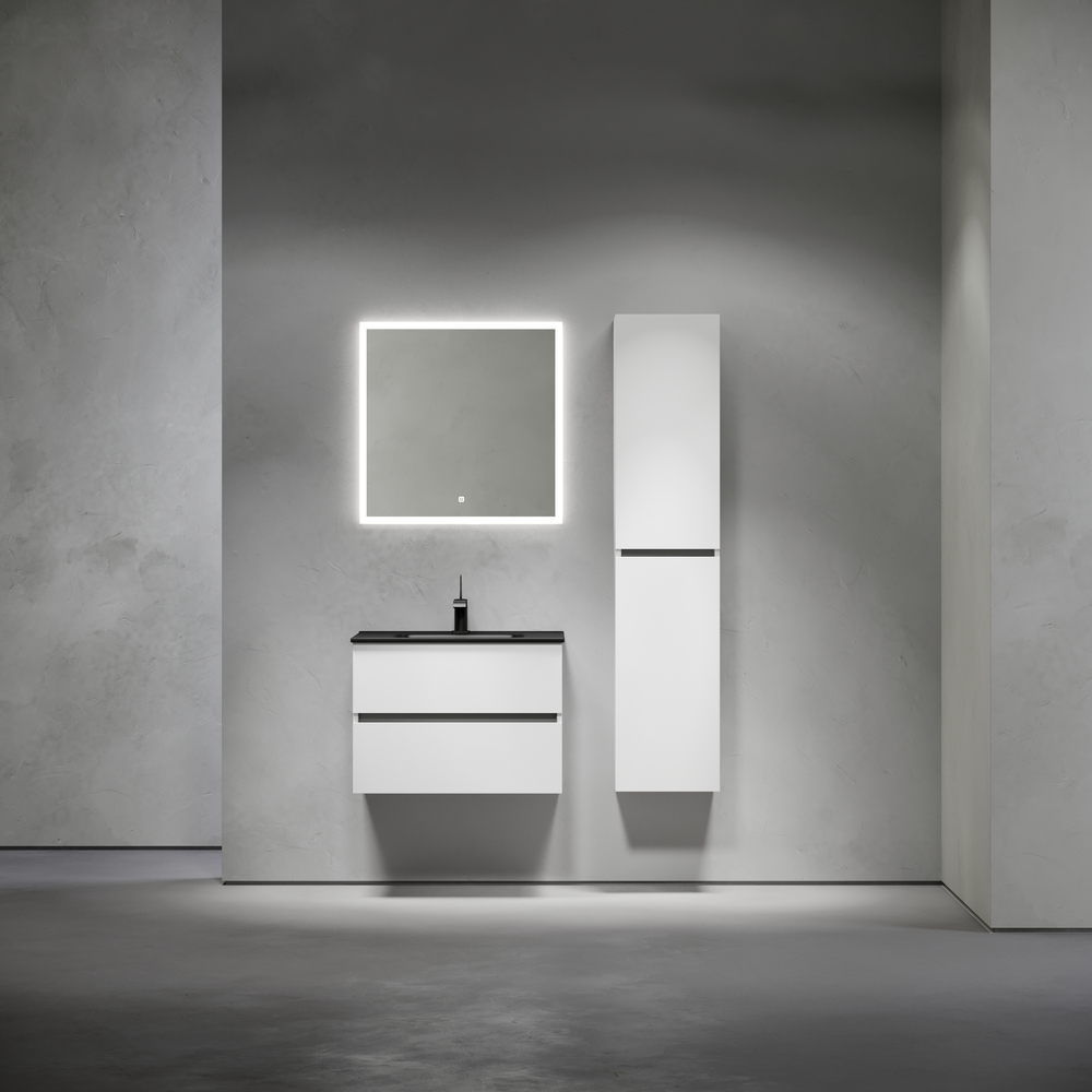Тумба подвесная Urban c двумя ящиками оснащенными доводчиками скрытого монтажа с системой плавного закрывания, а также с ручкой Gola по всей длине тумбы. Корпус тумбы выполнен из ЛДСП, фасад – из МДФ с покрытием "эмаль" в цвете «белый глянец».
