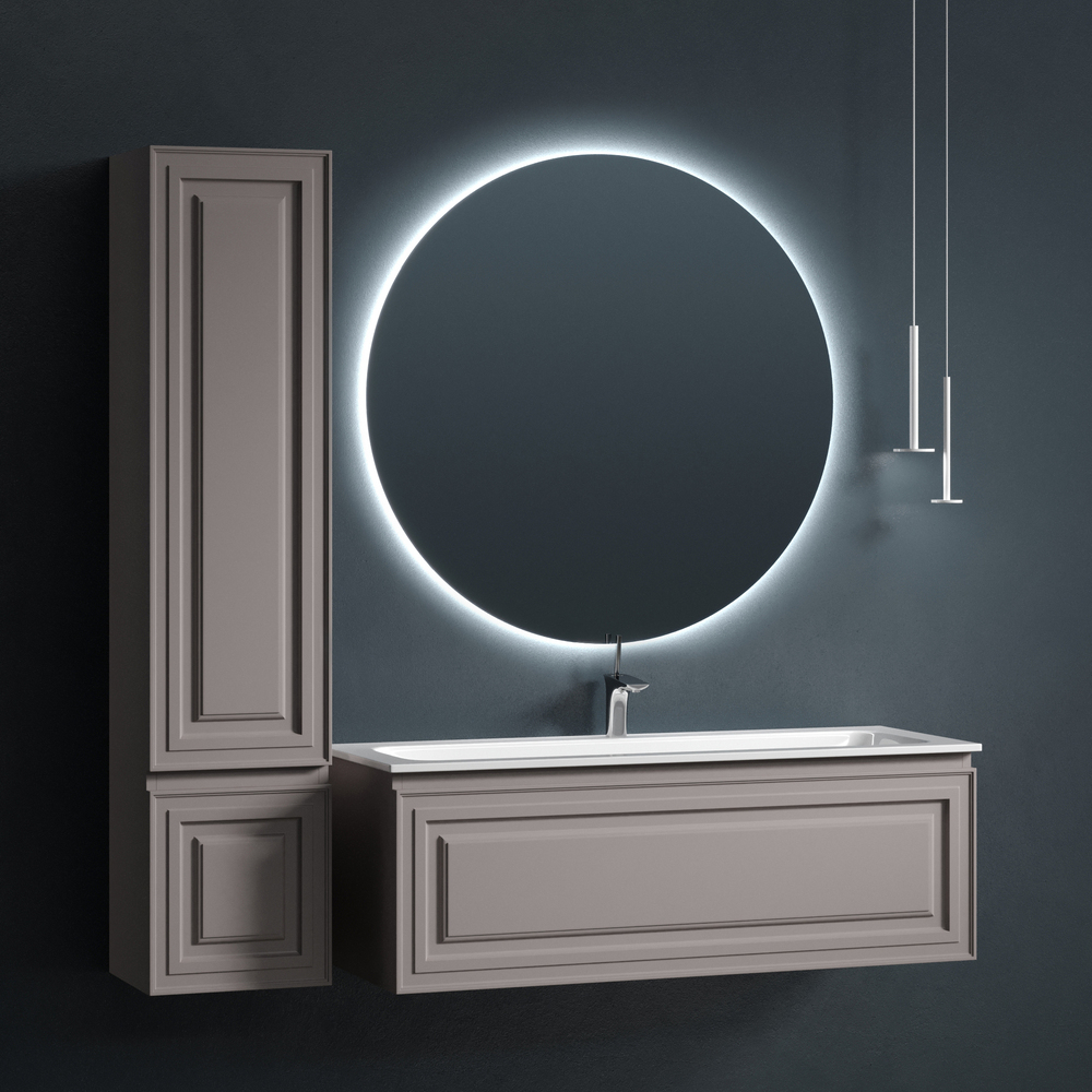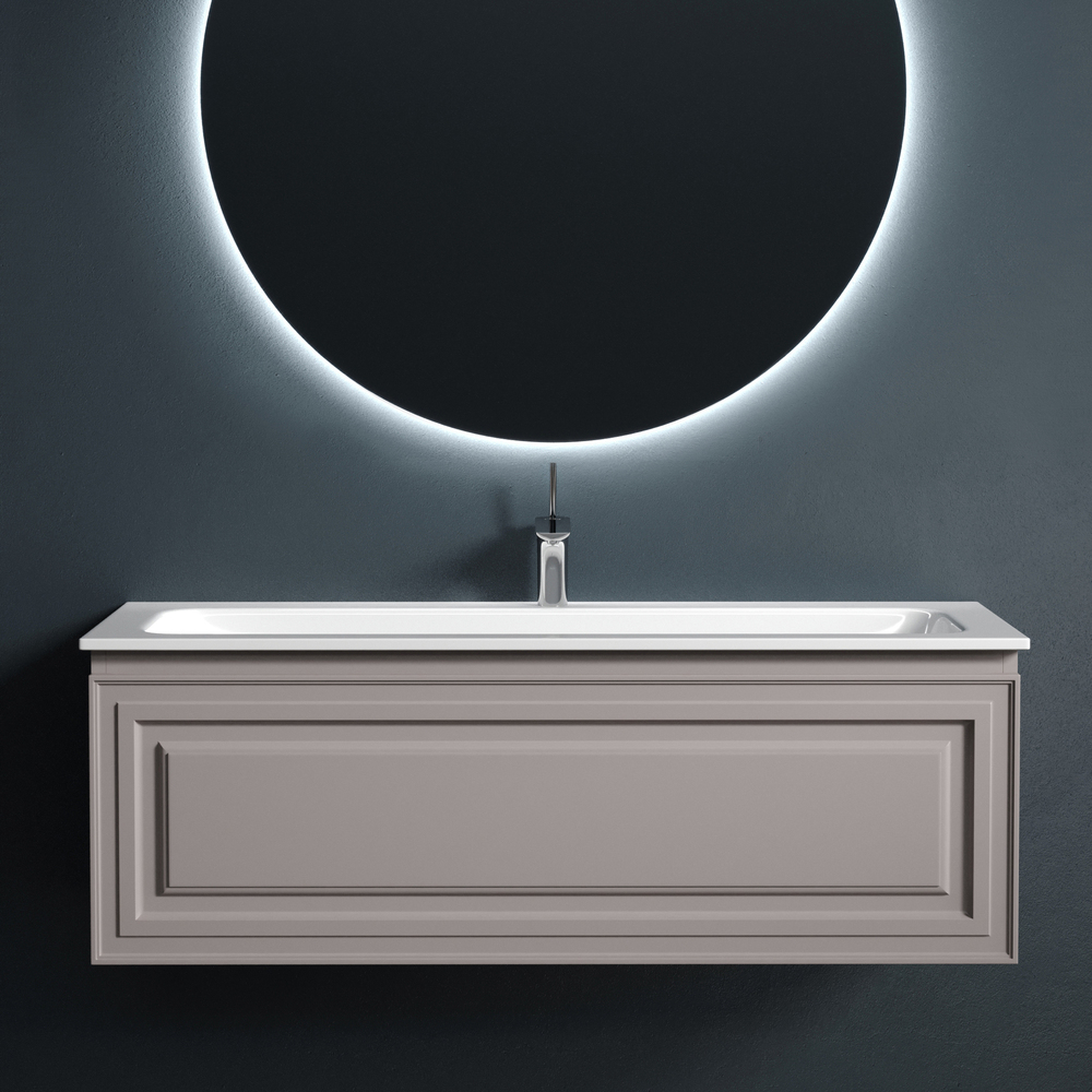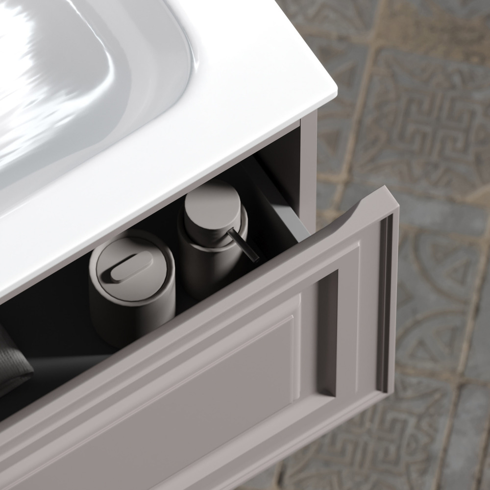 Тумба подвесная Very c одним ящиком, оснащенным доводчиками скрытого монтажа с системой плавного закрывания. Каркас и фасад тумбы выполнен из МДФ, покрытие пвх - плёнка в цвете «Doha Soft».
