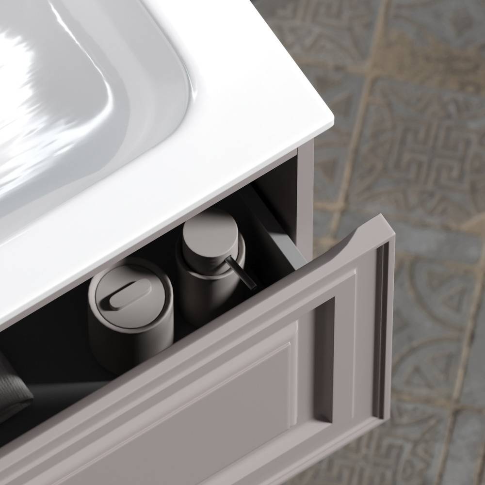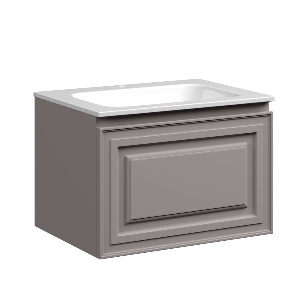 Тумба подвесная Very c одним ящиком, оснащенным доводчиками скрытого монтажа с системой плавного закрывания. Каркас и фасад тумбы выполнен из МДФ, покрытие пвх - плёнка в цвете «Doha Soft».