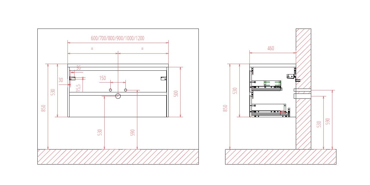 Тумба подвесная под столешницу BelBagno KRAFT-600-2C-SO-RNN