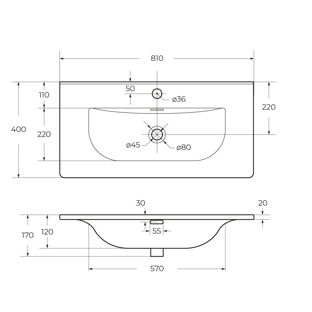 Тумба подвесная с раковиной ETNA39-800/390-2C-SO-RN-P+BB-8099-3-80