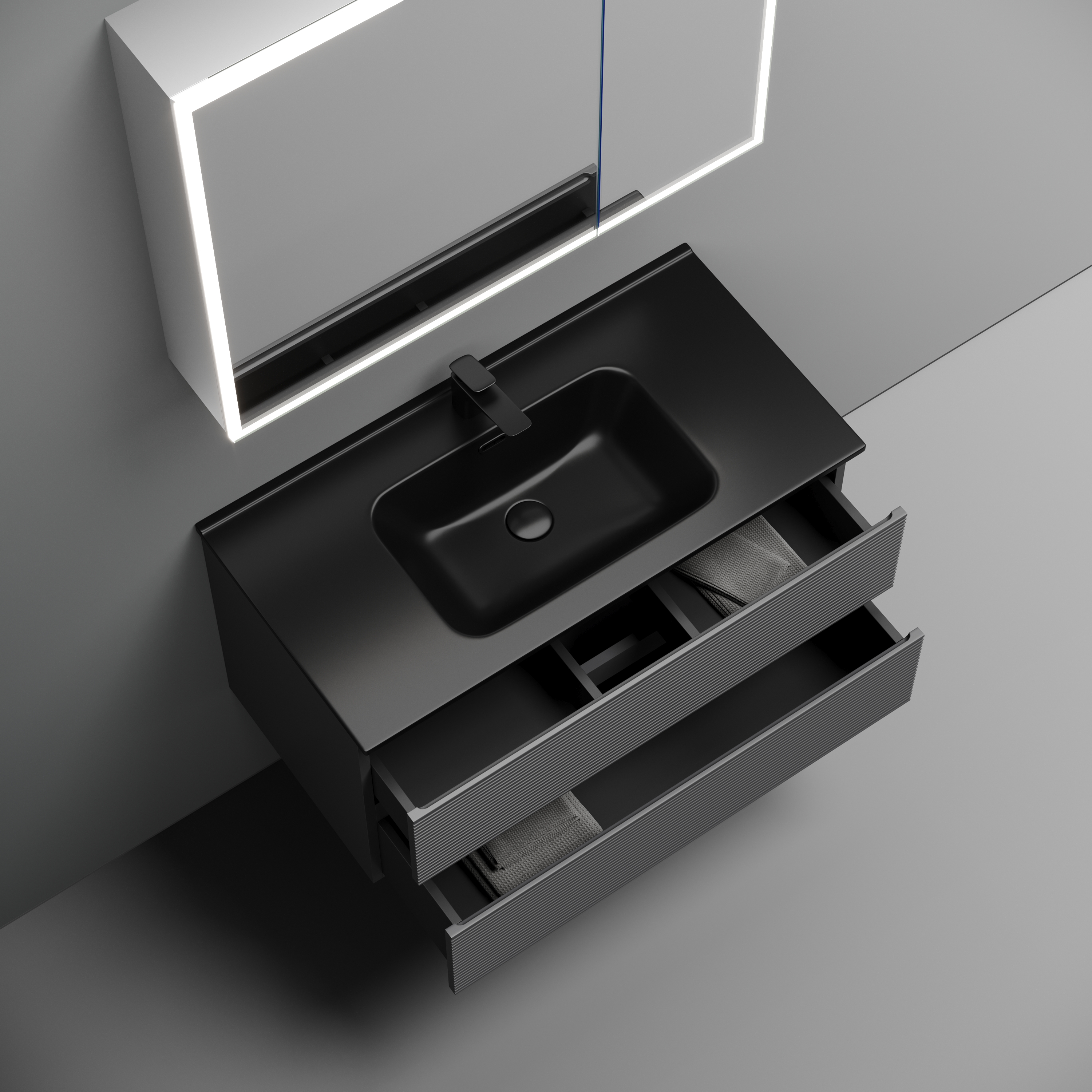 - Тумба подвесная Folk c двумя ящиками оснащенными доводчиками скрытого монтажа с системой плавного закрывания.