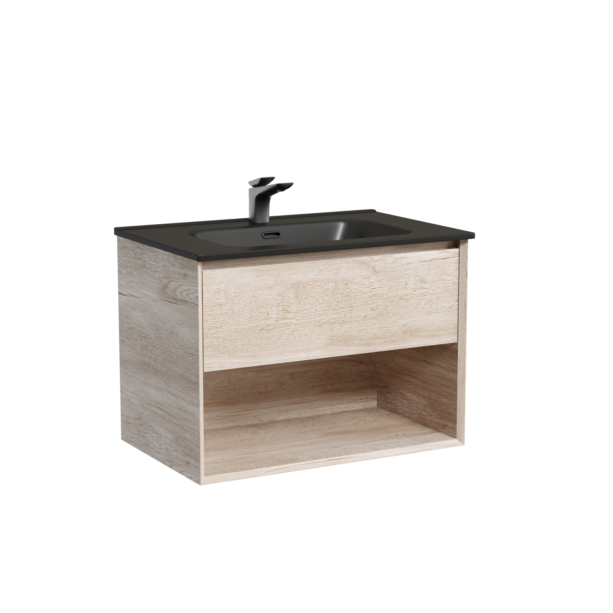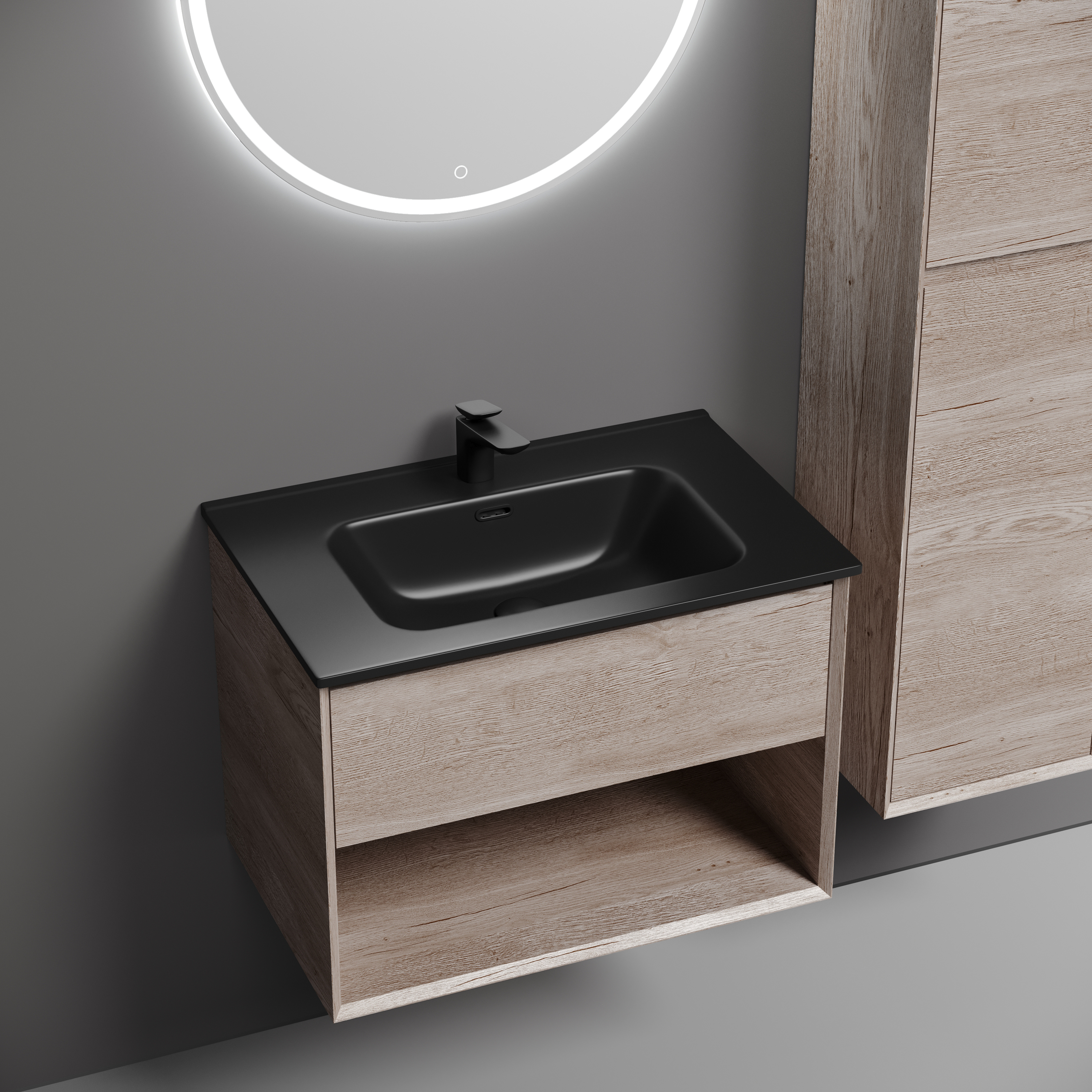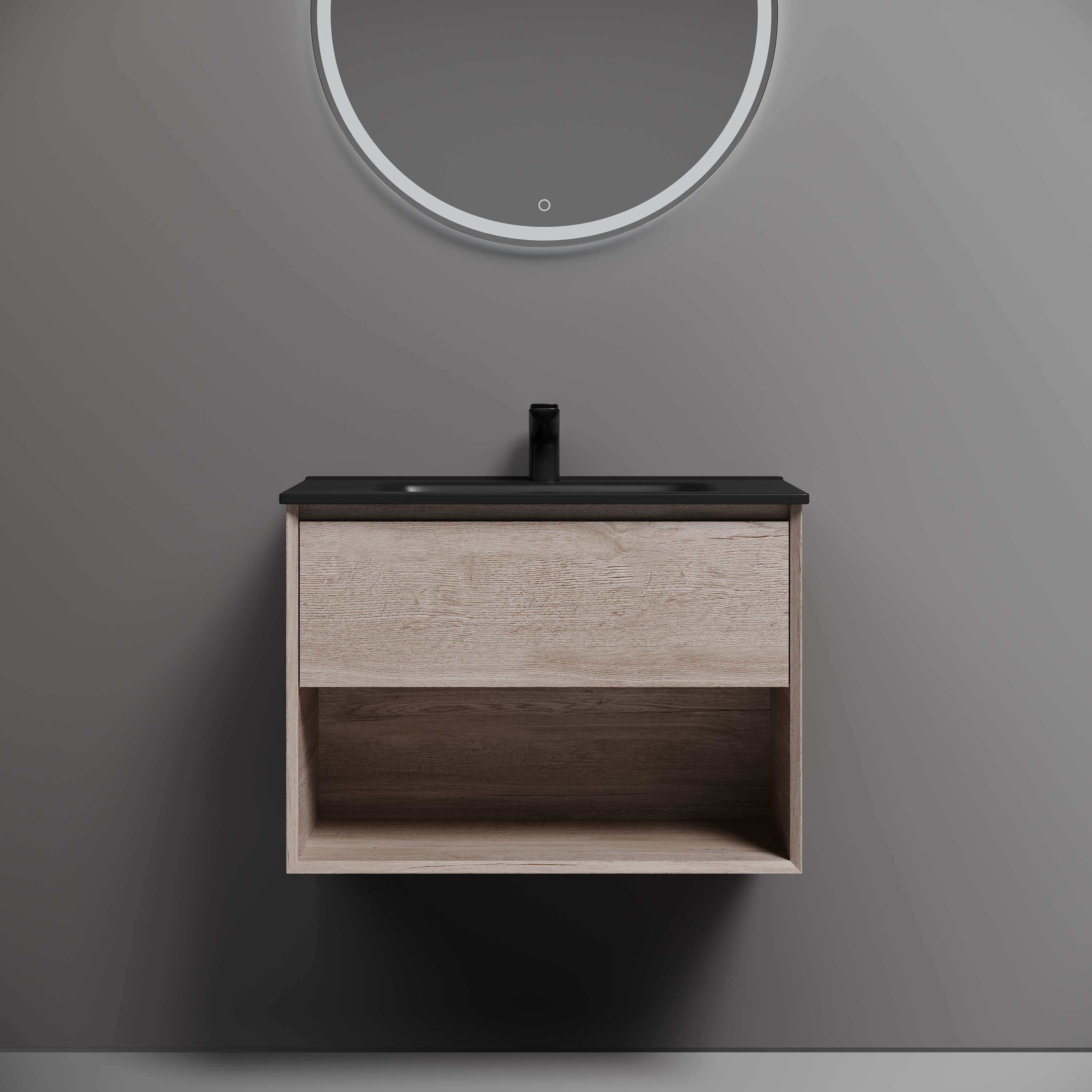 Тумба подвесная Sancos Marmi 1.0 690х445х520 c одним ящиком оснащенным доводчиками скрытого монтажа и открытой нишей, дуб галифакс натуральный, арт. MR1.070EG