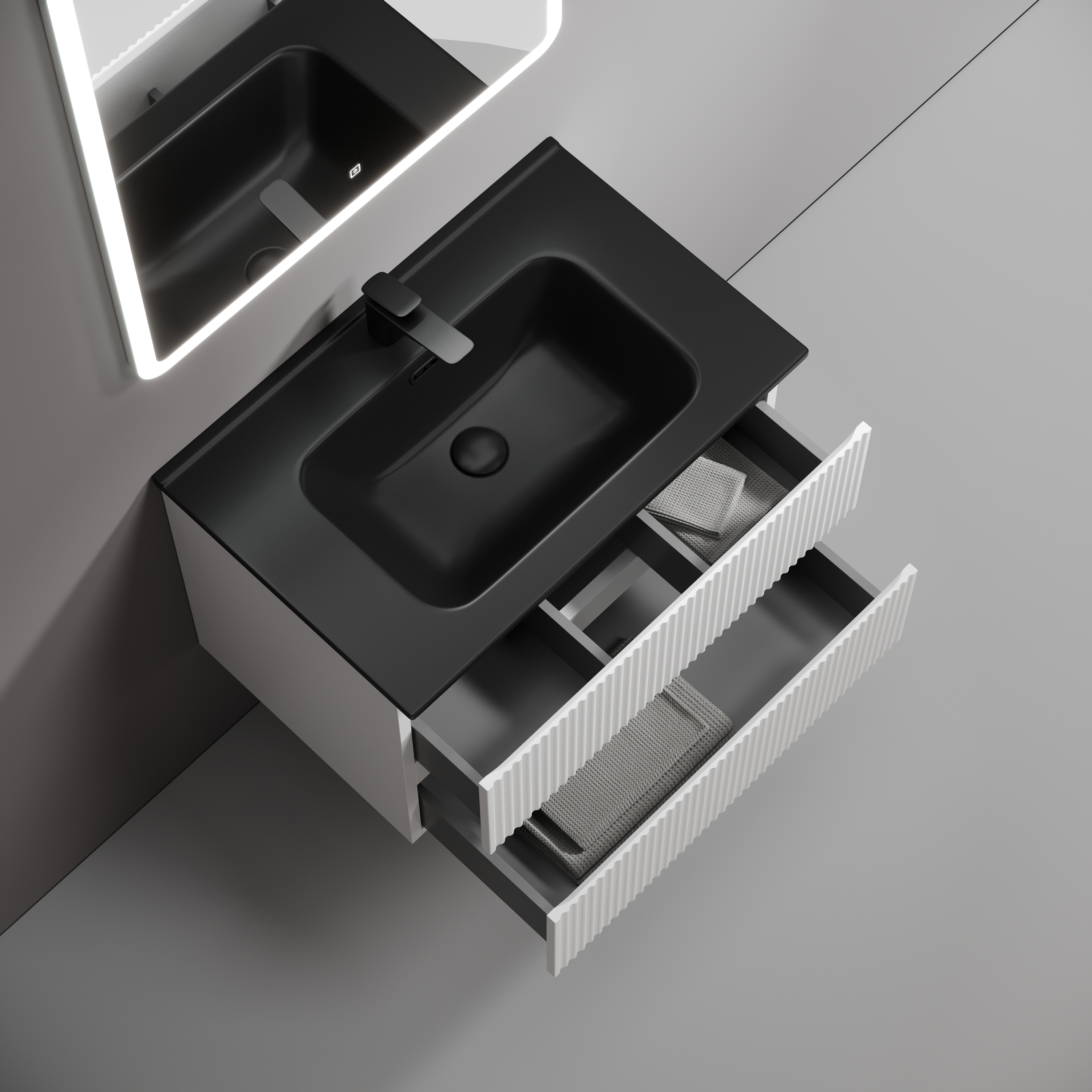 - Тумба подвесная Snob R c двумя ящиками оснащенными доводчиками скрытого монтажа с системой плавного закрывания.