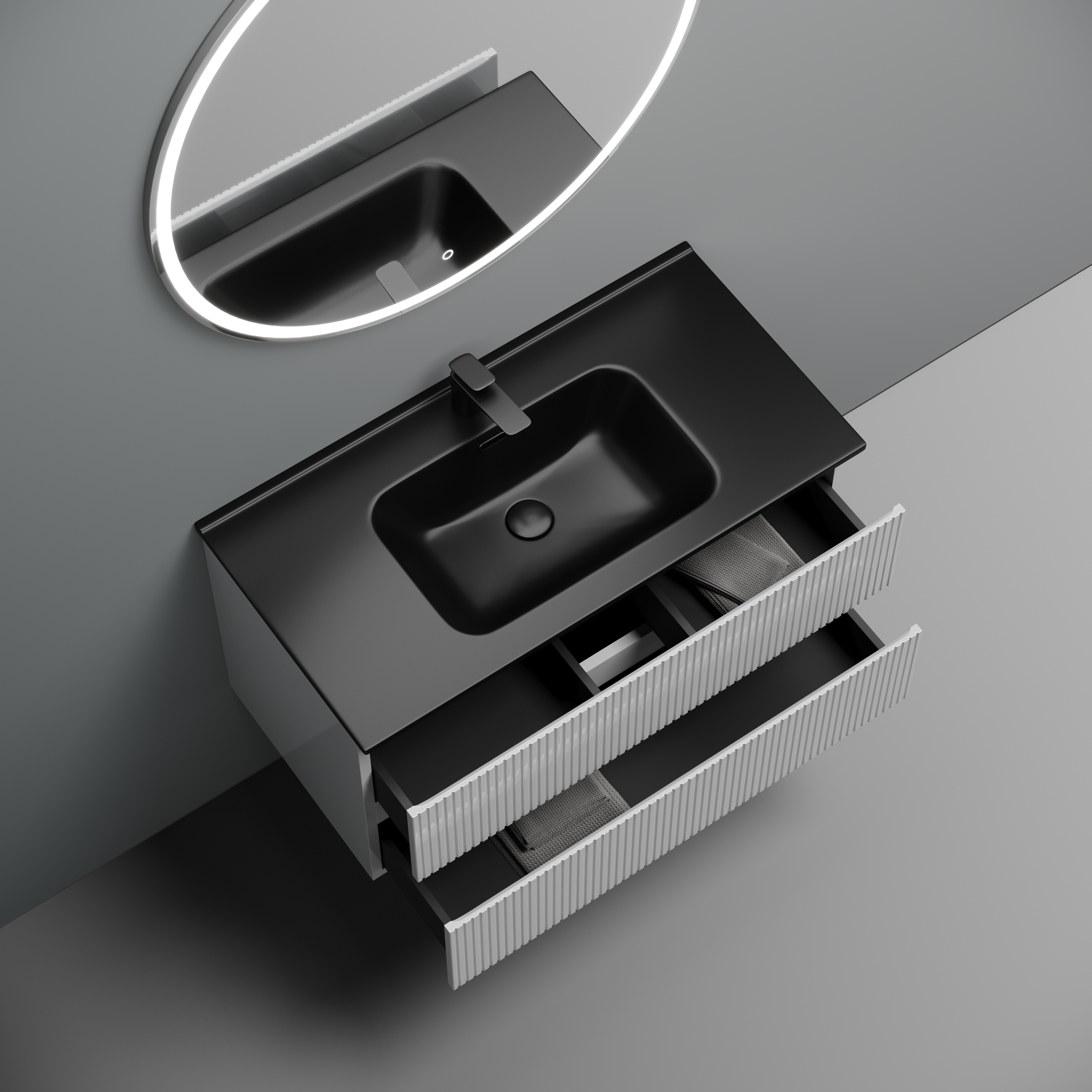 - Тумба подвесная Snob T c двумя ящиками оснащенными доводчиками скрытого монтажа с системой плавного закрывания.