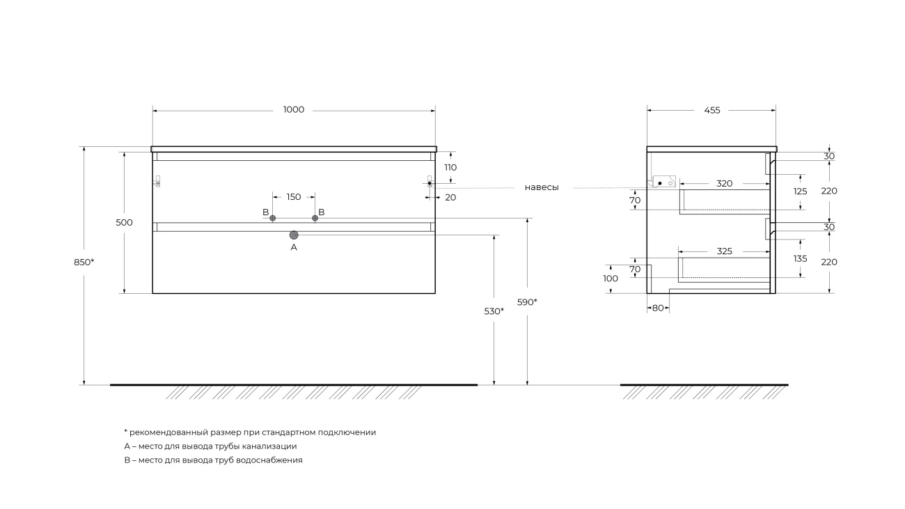 Тумба с раковиной подвесная BelBagno KRAFT-1000-2C-SO-GSO Темно-Серый матовый, раковина белая BB1000ETL