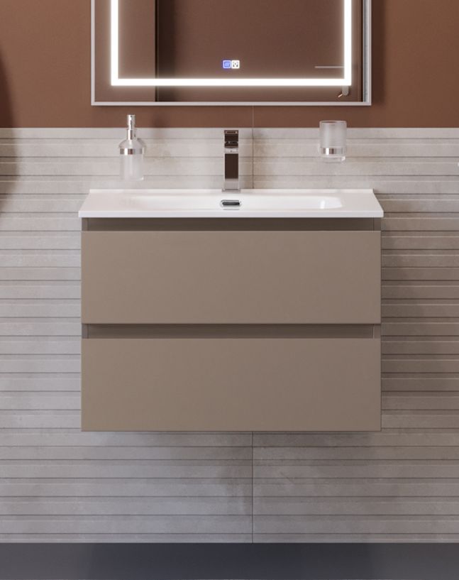 Тумба с раковиной подвесная BelBagno KRAFT-600-2C-SO-CO Бежевый матовый, раковина белая BB600ETL