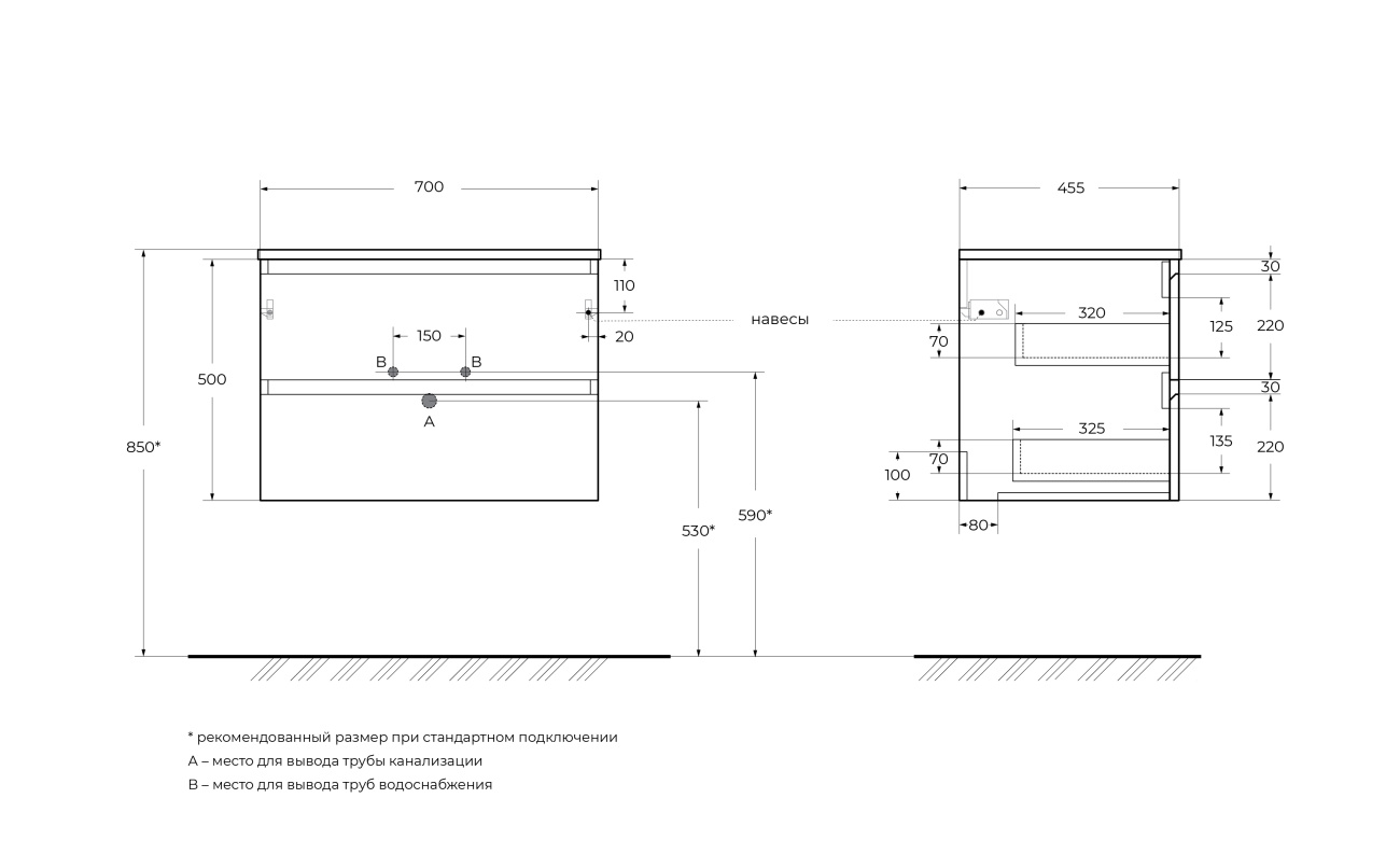 Тумба с раковиной подвесная BelBagno KRAFT-700-2C-SO-VO Еловый матовый, раковина белая BB700ETL