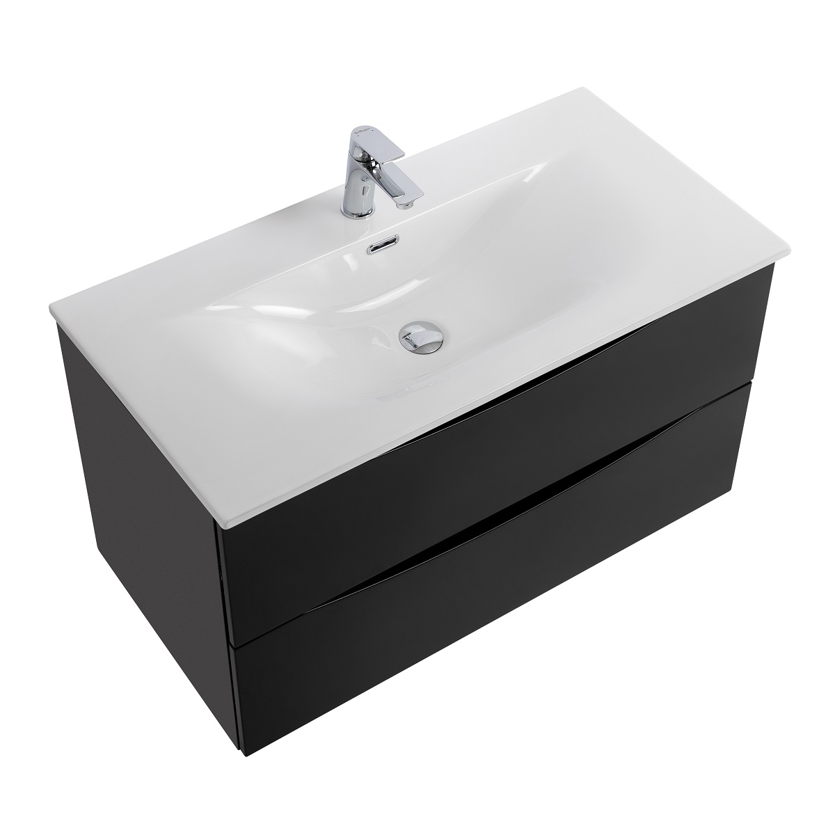 Тумба с раковиной подвесная BelBagno MARINO-CER-MINI-1000-2C-SO-NL-P Nero Lucido, раковина белая BB-8099-3-100