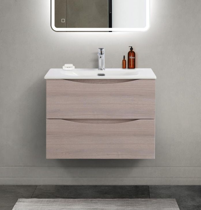 Тумба с раковиной подвесная BelBagno MARINO-CER-MINI-700-2C-SO-RG-P Rovere Grigio, раковина белая BB-8099-3-70