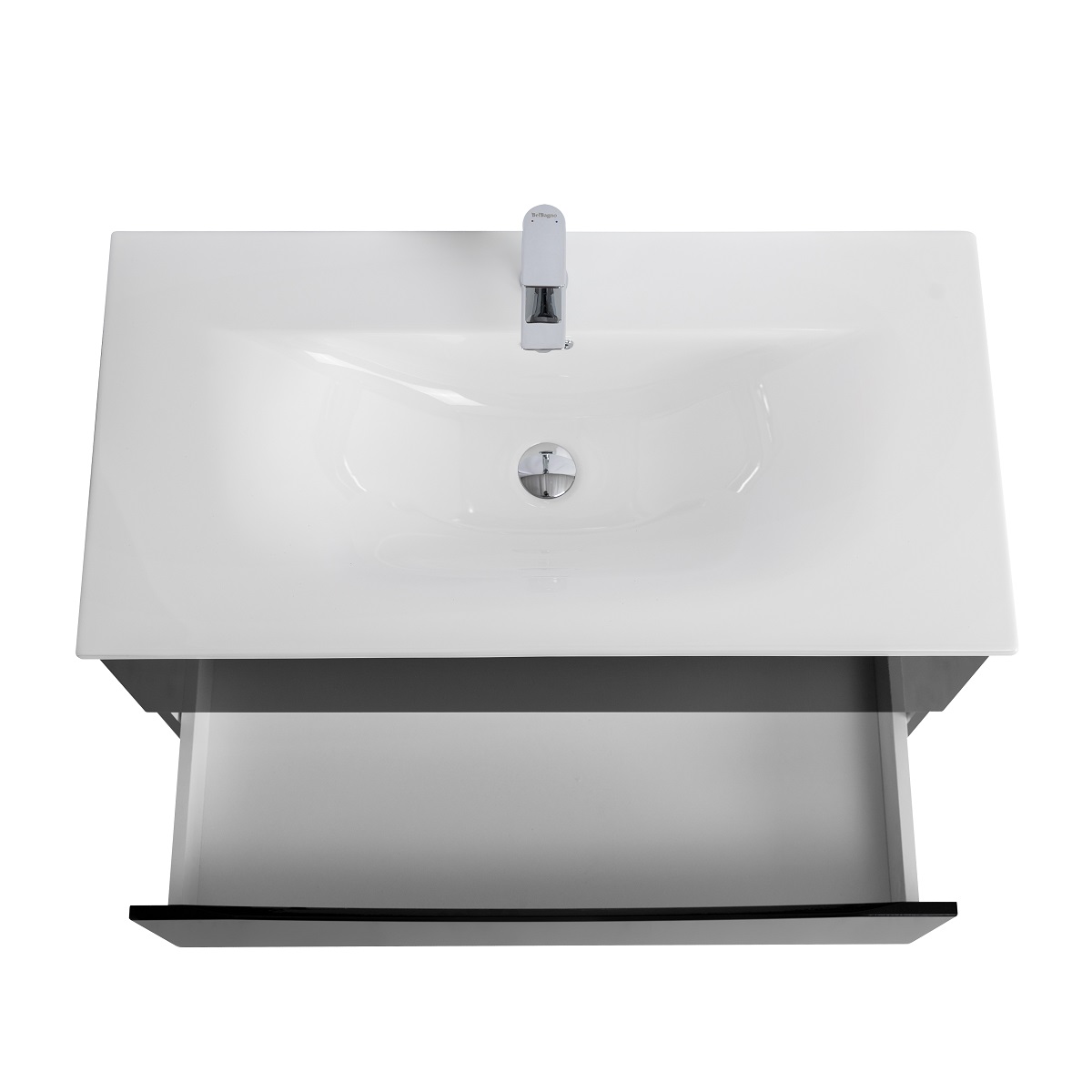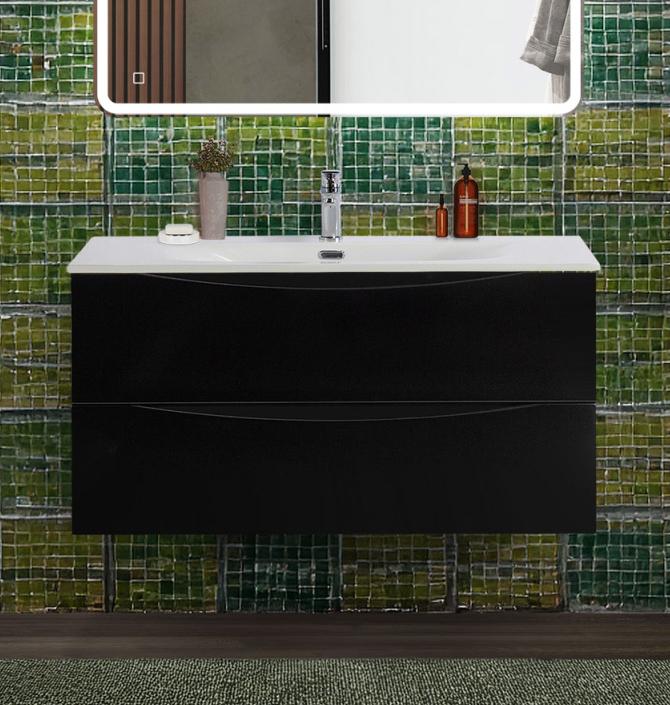 Тумба с раковиной подвесная BelBagno MARINO-CER-N-1000-2C-SO-NL-P Nero Lucido, раковина белая BB-8099-100