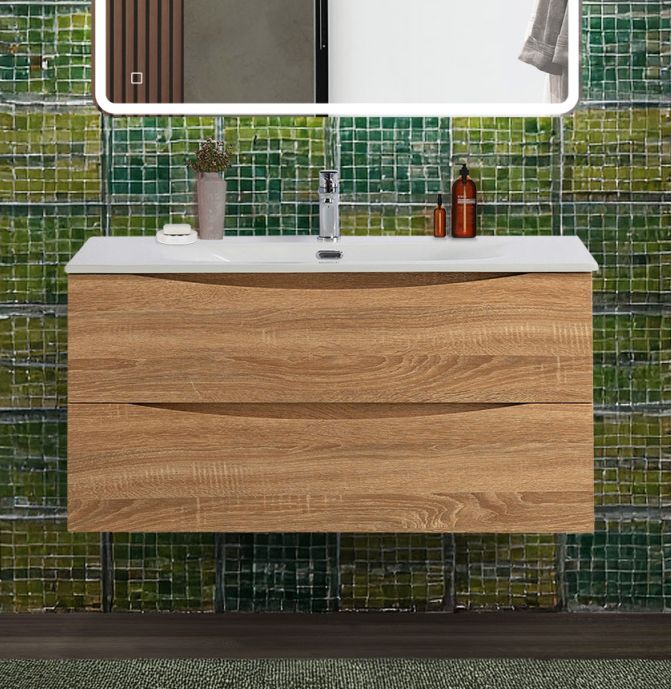 Тумба с раковиной подвесная BelBagno MARINO-CER-N-1000-2C-SO-WO-P Rovere Bianco, раковина белая BB-8099-100
