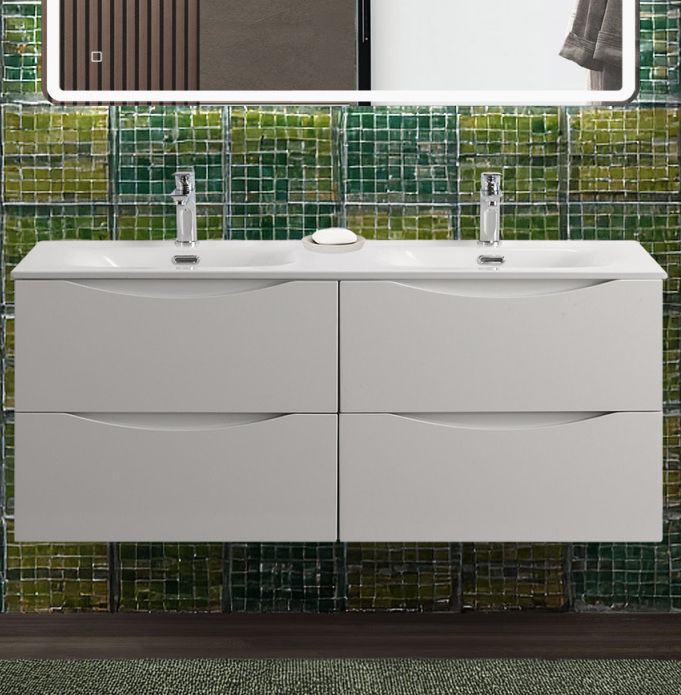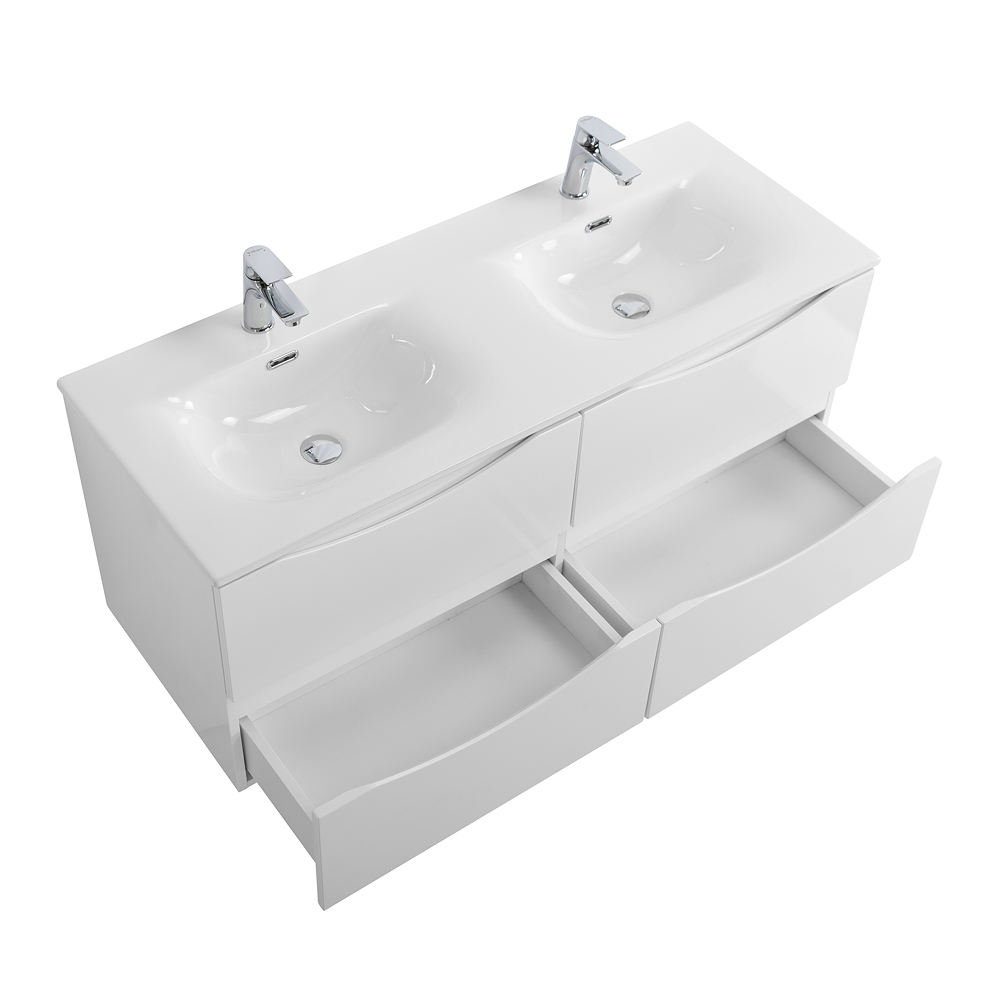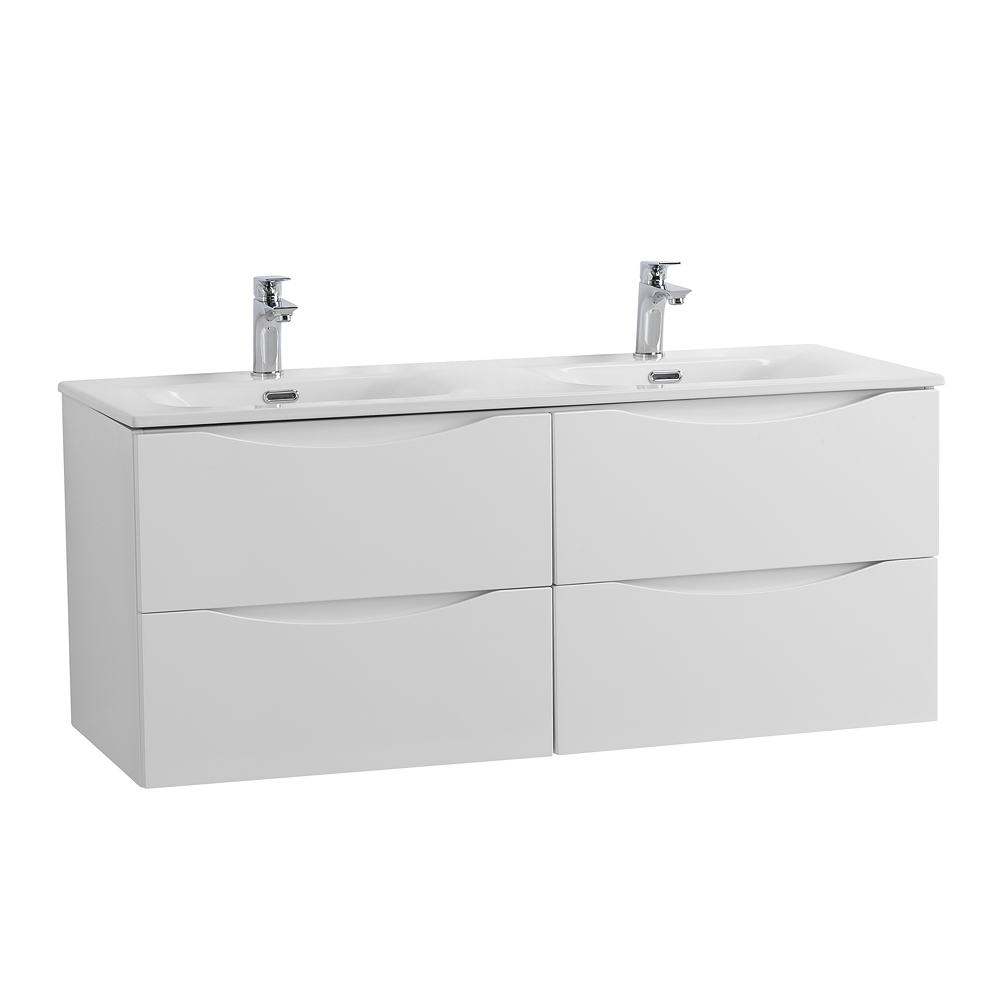 Тумба с раковиной подвесная BelBagno MARINO-CER-N-1200-4C-SO-BO-P Bianco Opaco, раковина белая BB-8099-120-2 с 2-я чашами