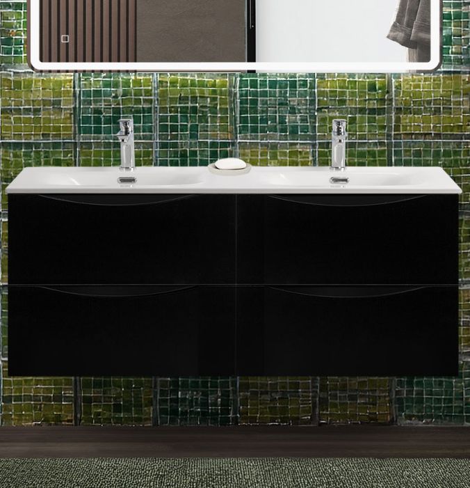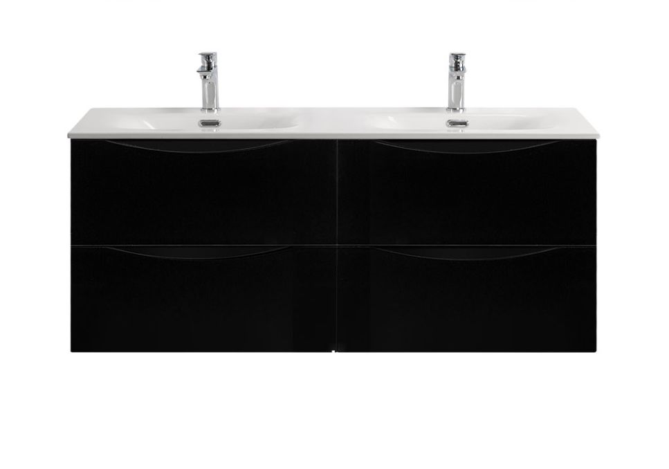 Тумба с раковиной подвесная BelBagno MARINO-CER-N-1200-4C-SO-NL-P Nero Lucido, раковина белая BB-8099-120-2 с 2-я чашами