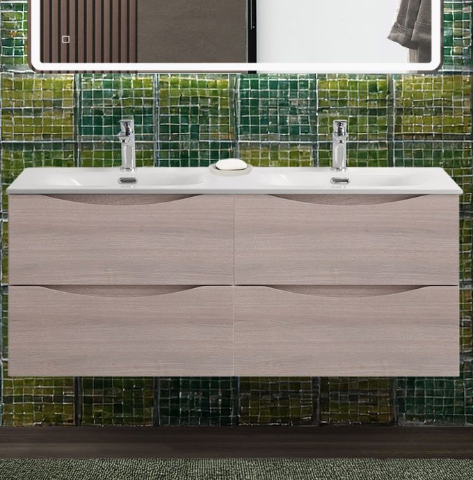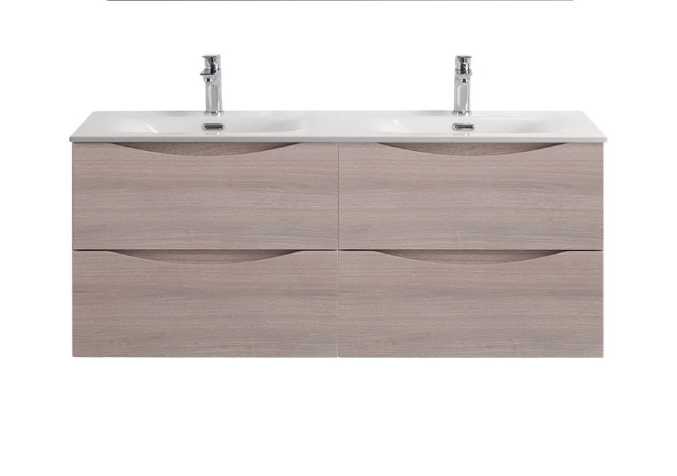 Тумба с раковиной подвесная BelBagno MARINO-CER-N-1200-4C-SO-RG-P Rovere Grigio, раковина белая BB-8099-120-2 с 2-я чашами