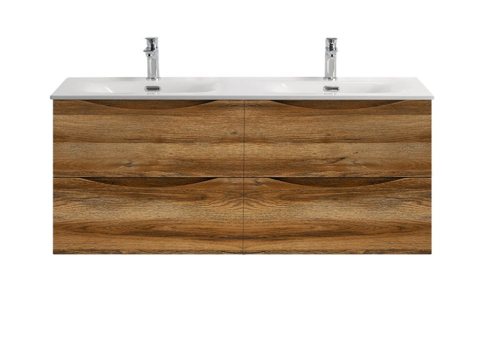 Тумба с раковиной подвесная BelBagno MARINO-CER-N-1200-4C-SO-RR-P Rovere Rustico, раковина белая BB-8099-120-2 с 2-я чашами