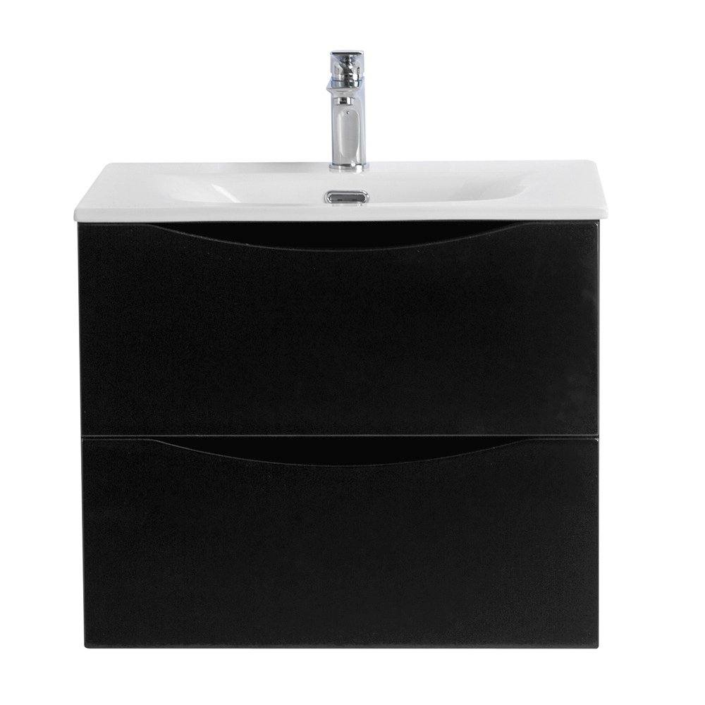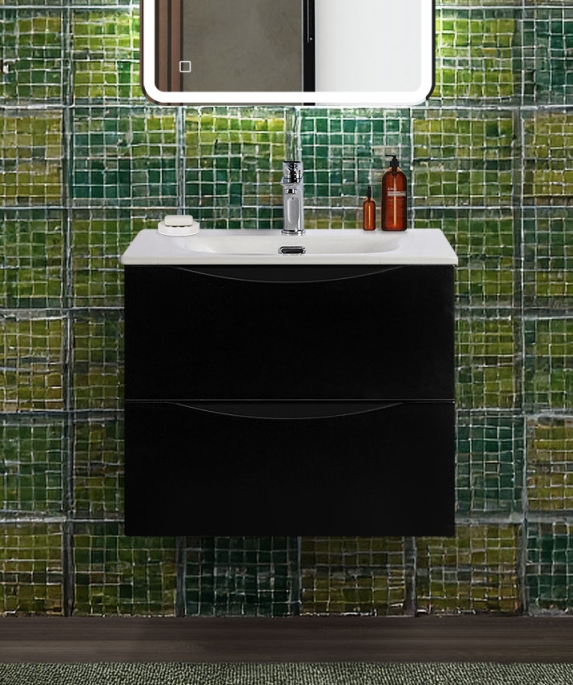 Тумба с раковиной подвесная BelBagno MARINO-CER-N-600-2C-SO-NL-P Nero Lucido, раковина белая BB-8099-60