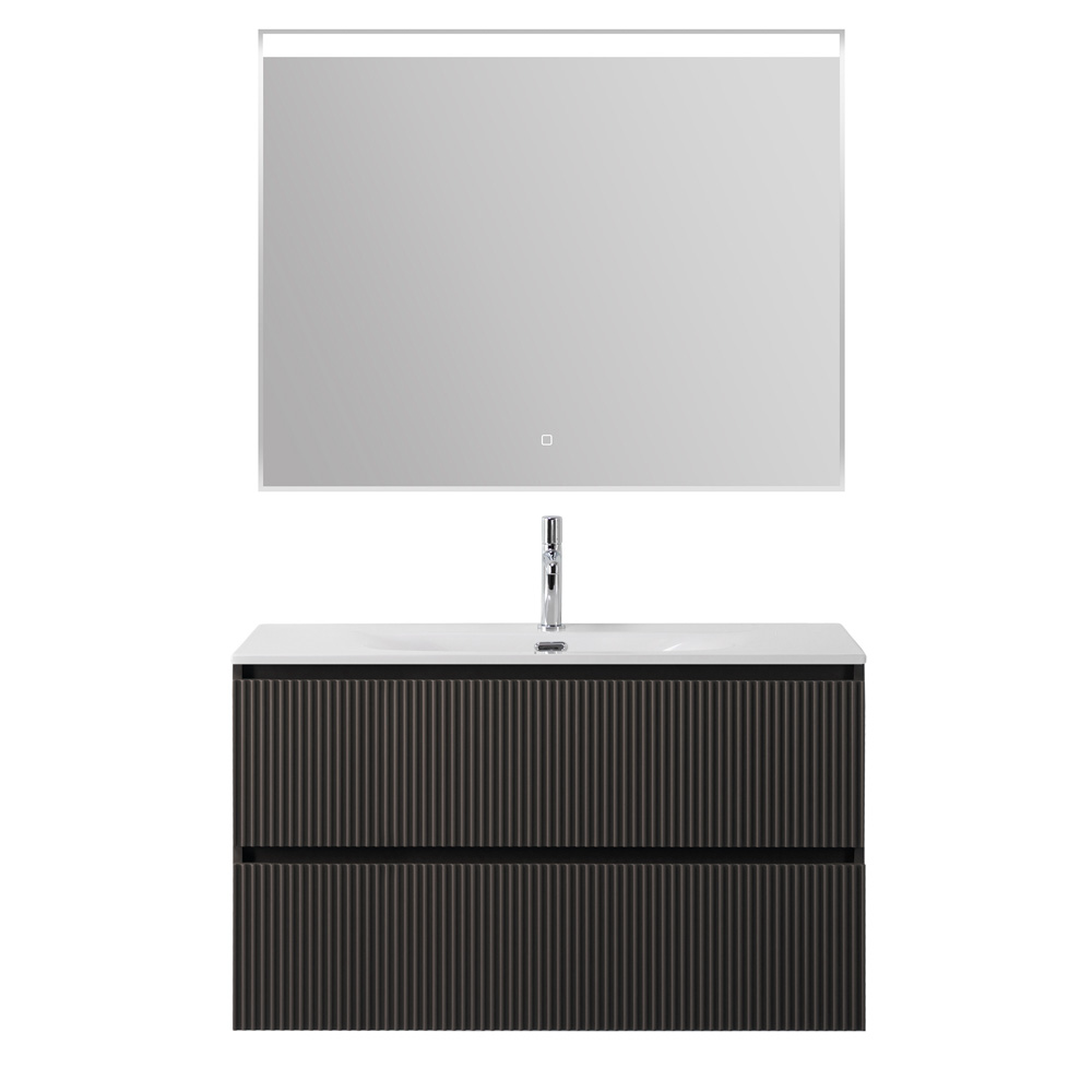 Тумба с раковиной подвесная BelBagno UNO-1000-2C-SO-GSO Темно-Серый матовый, раковина белая BB-8099-100