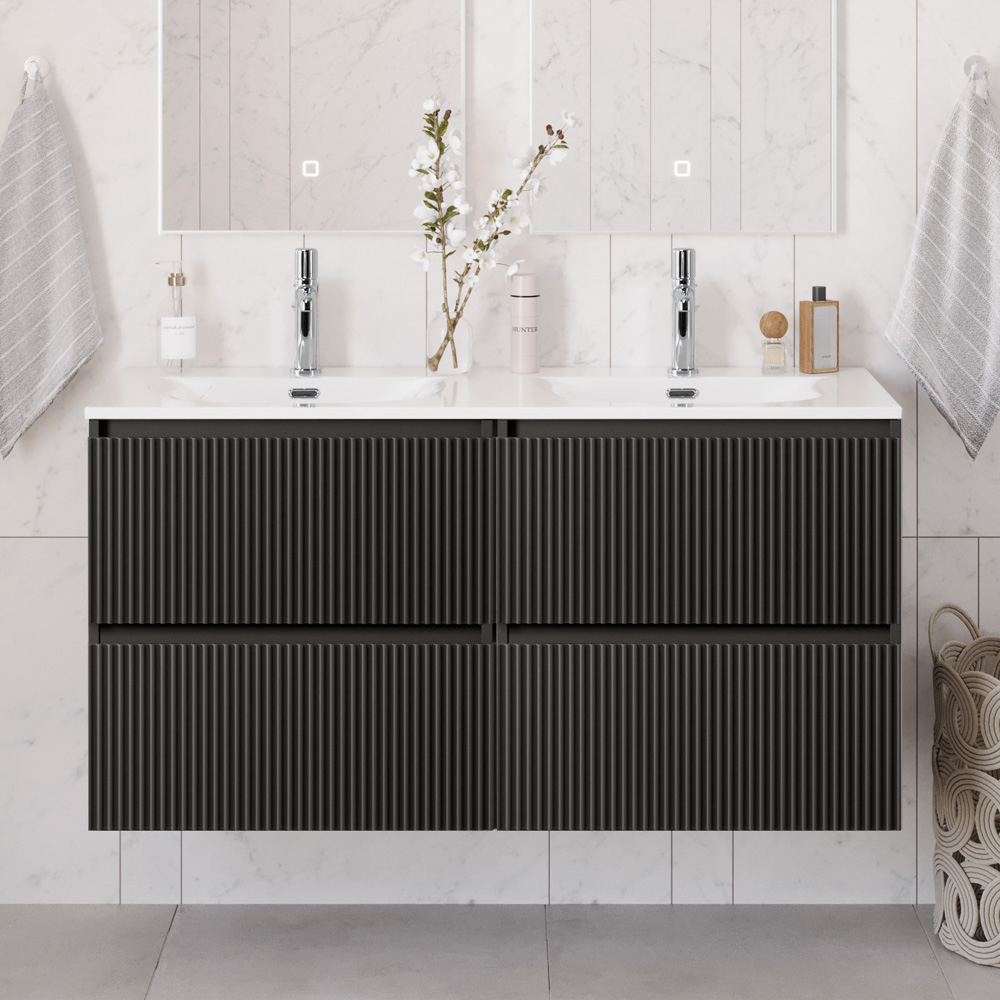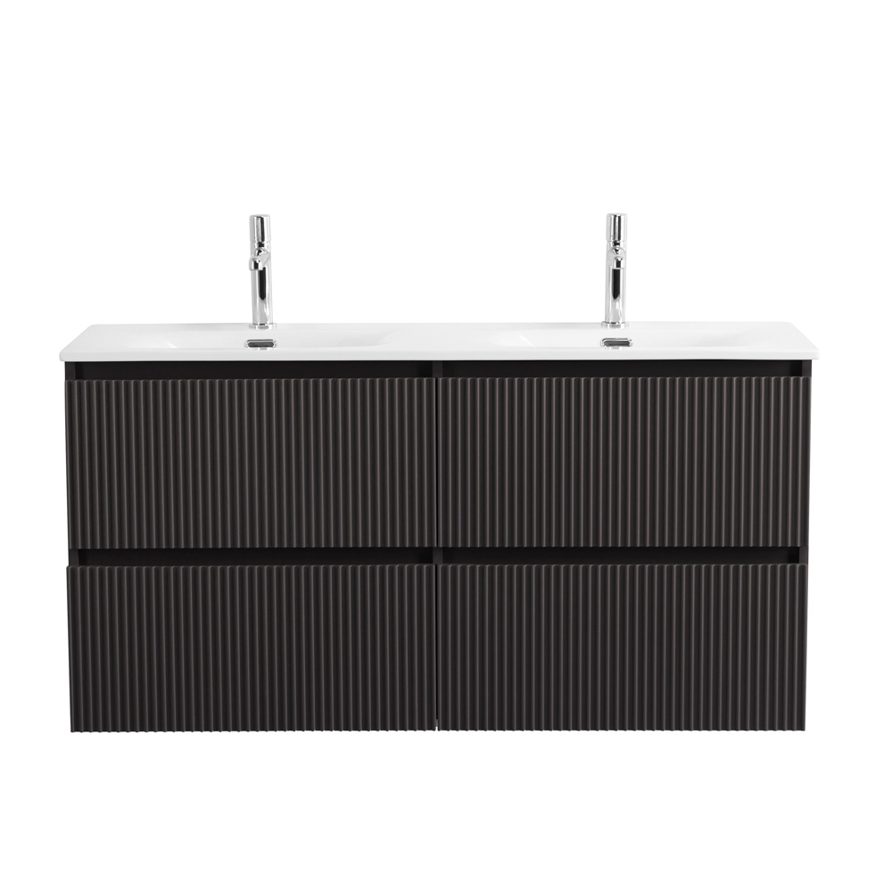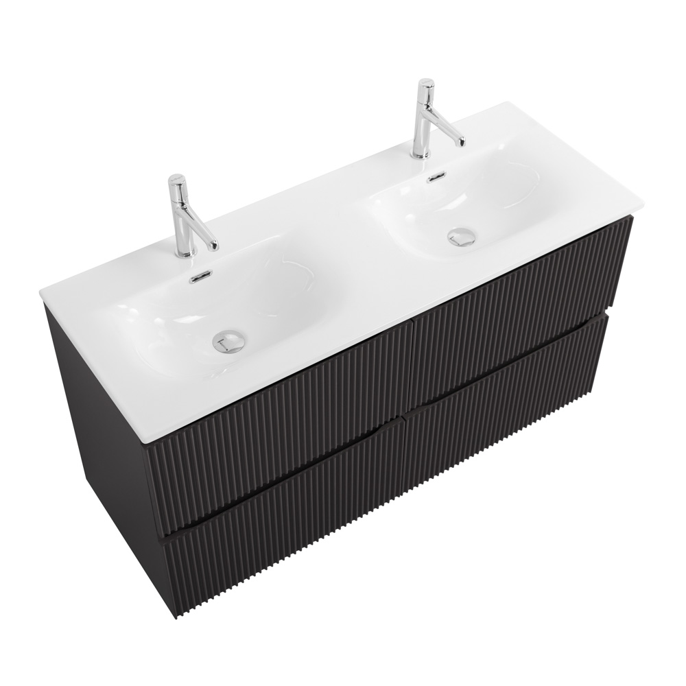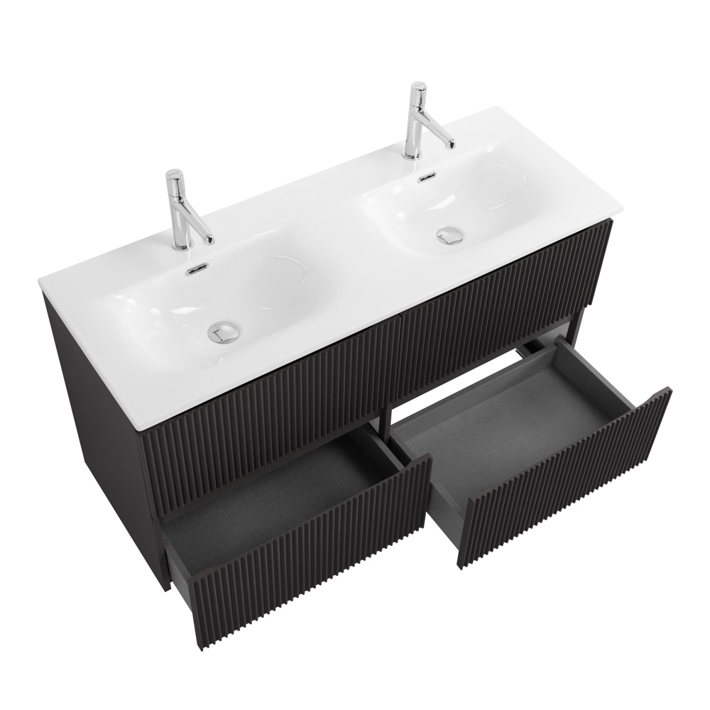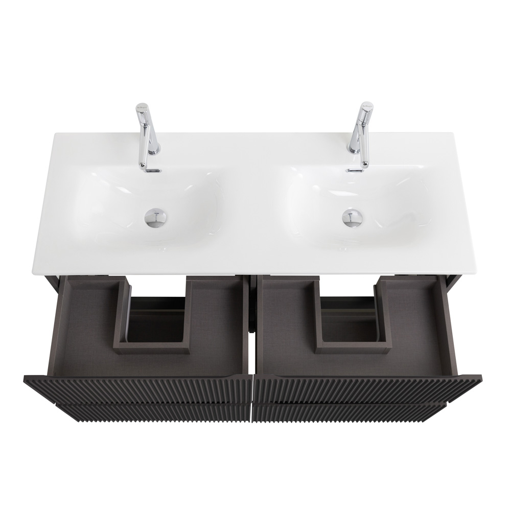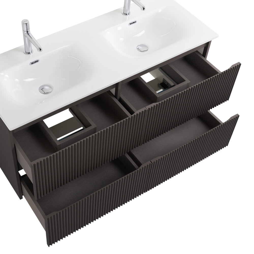 Тумба с раковиной подвесная BelBagno UNO-1200-4C-SO-GSO Темно-Серый матовый, раковина белая BB-8099-120-2 с 2-я чашами
