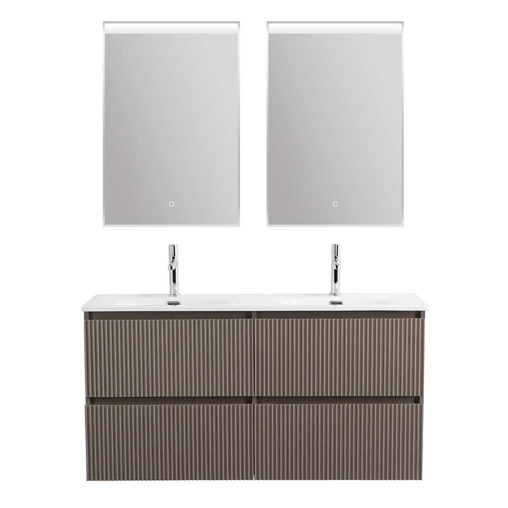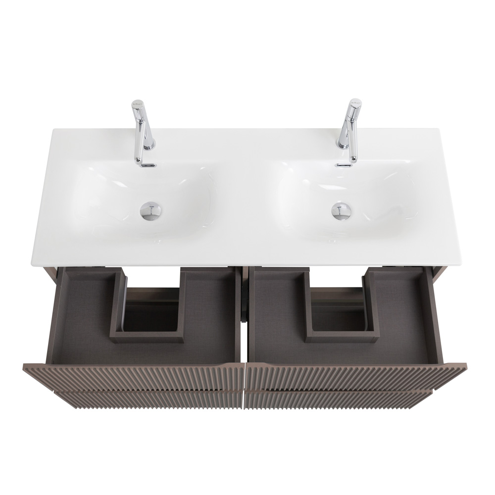 Тумба с раковиной подвесная BelBagno UNO-1200-4C-SO-СO Бежевый матовый, раковина белая BB-8099-120-2 с 2-я чашами