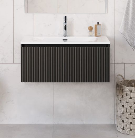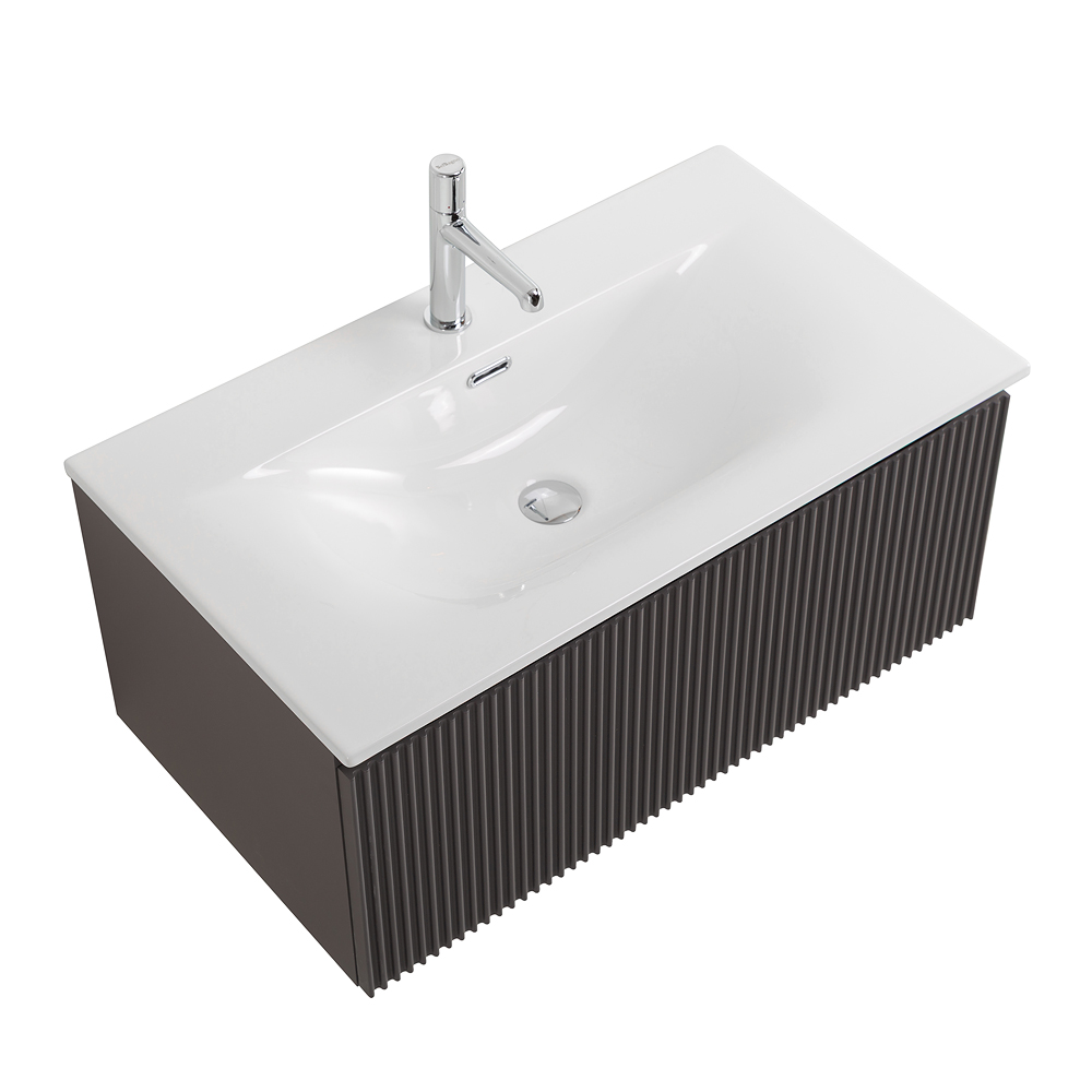 Тумба с раковиной подвесная BelBagno UNO-800-1C-SO-GSO Темно-Серый матовый, раковина белая BB-8099-80